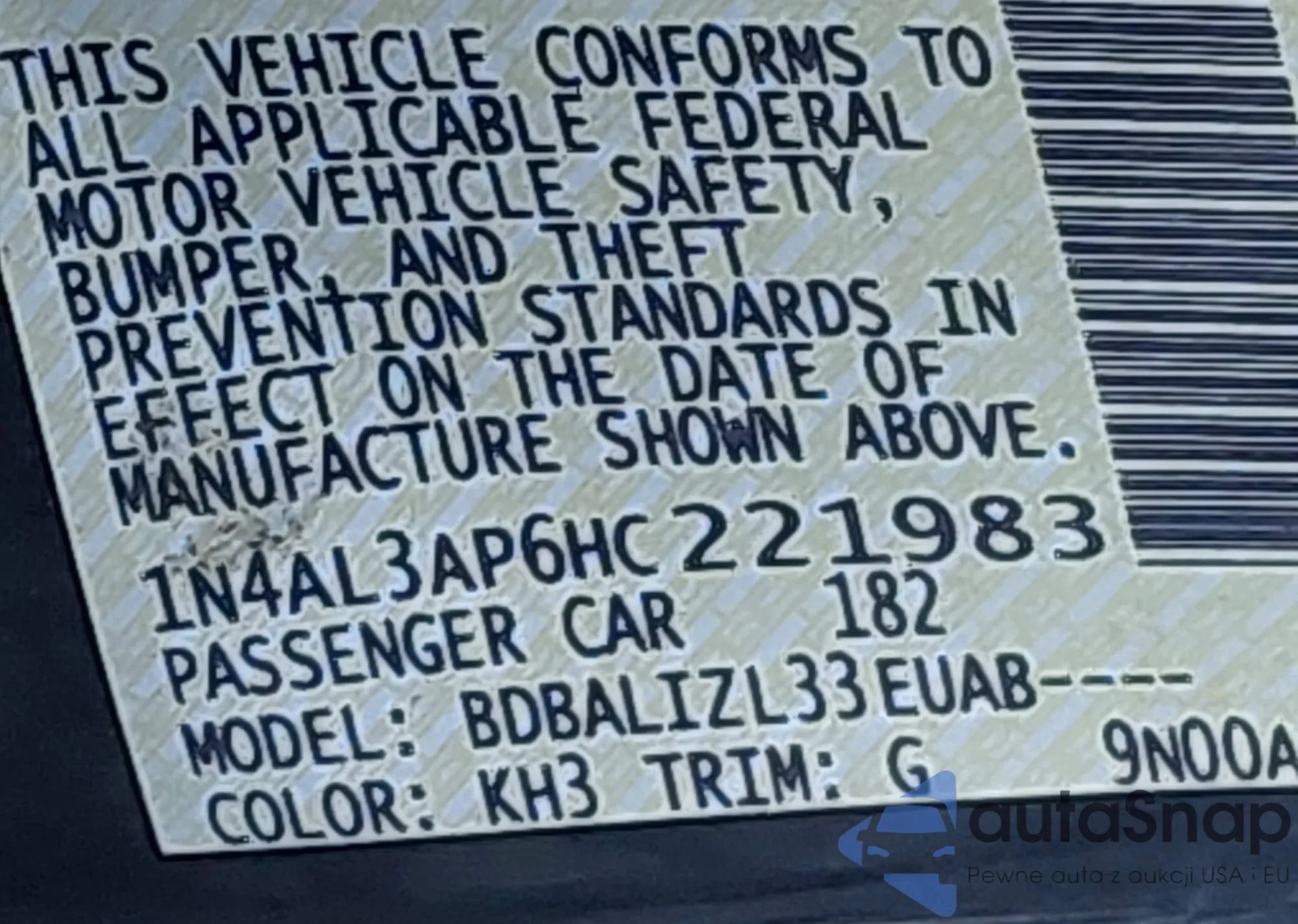 LOT: 43951775 VIN: 1N4AL3AP6HC221983