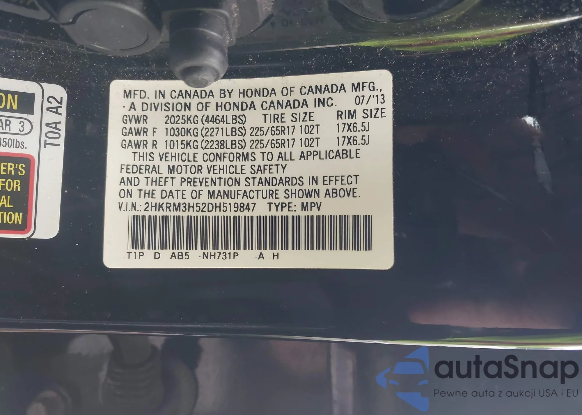 LOT: 43955220 VIN: JN1CV6AR1DM750264