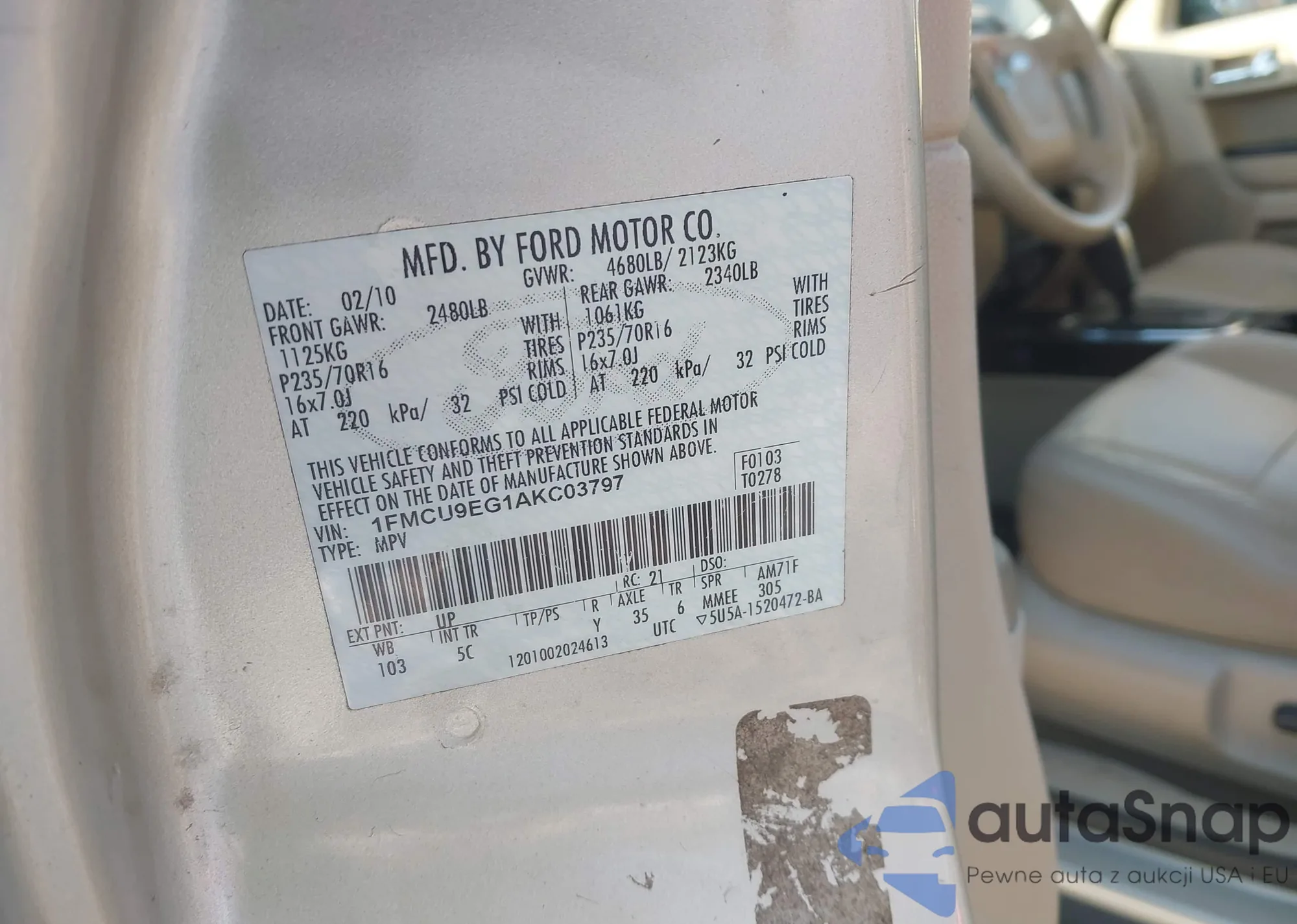 LOT: 44035749 VIN: 1FMCU9EG1AKC03797