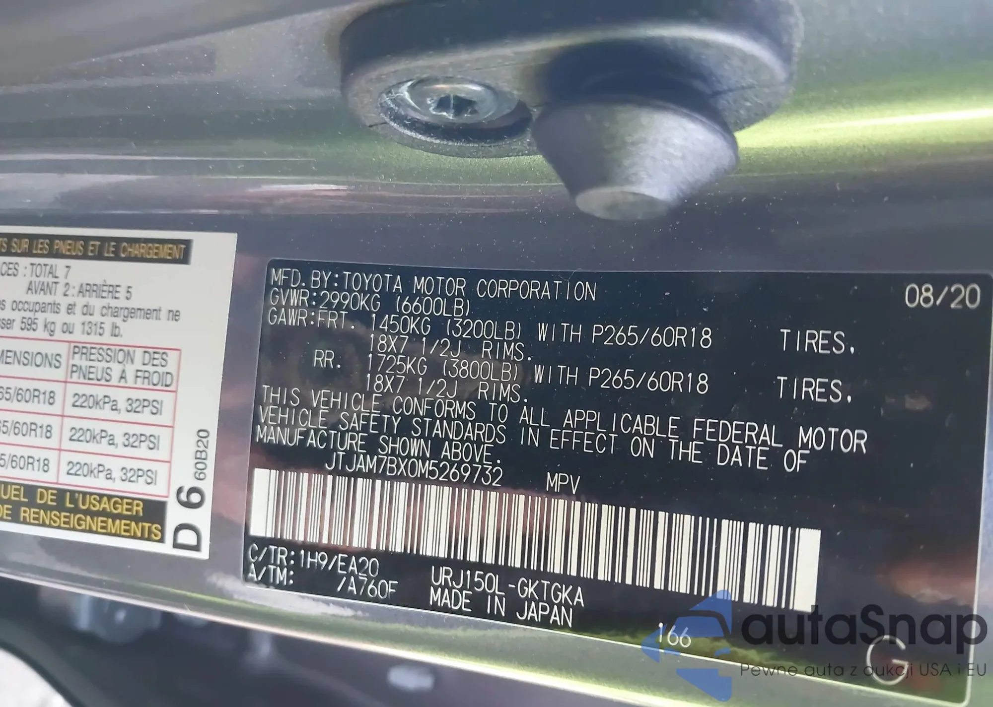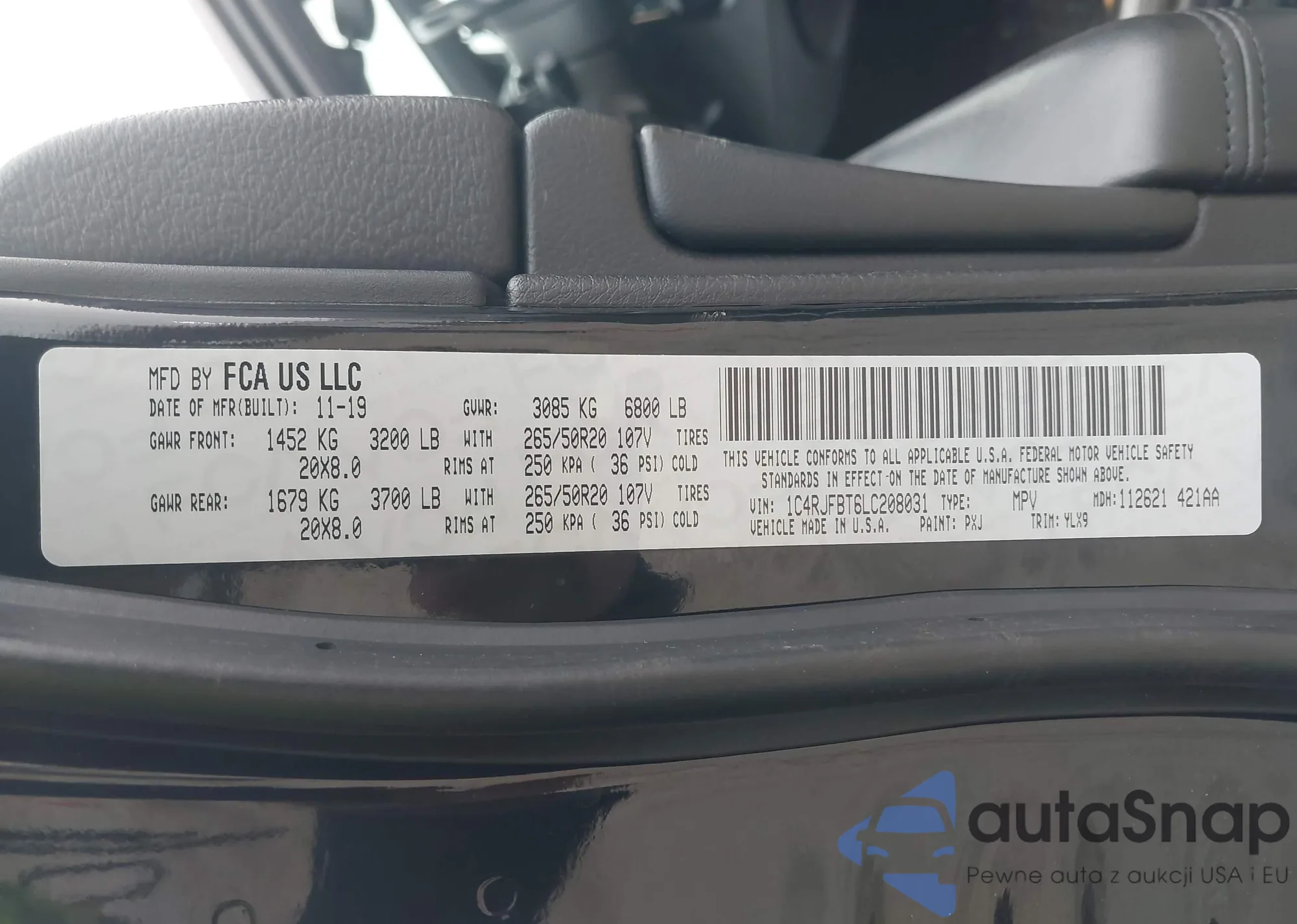 • VIN 1C4RJFBT6LC208031