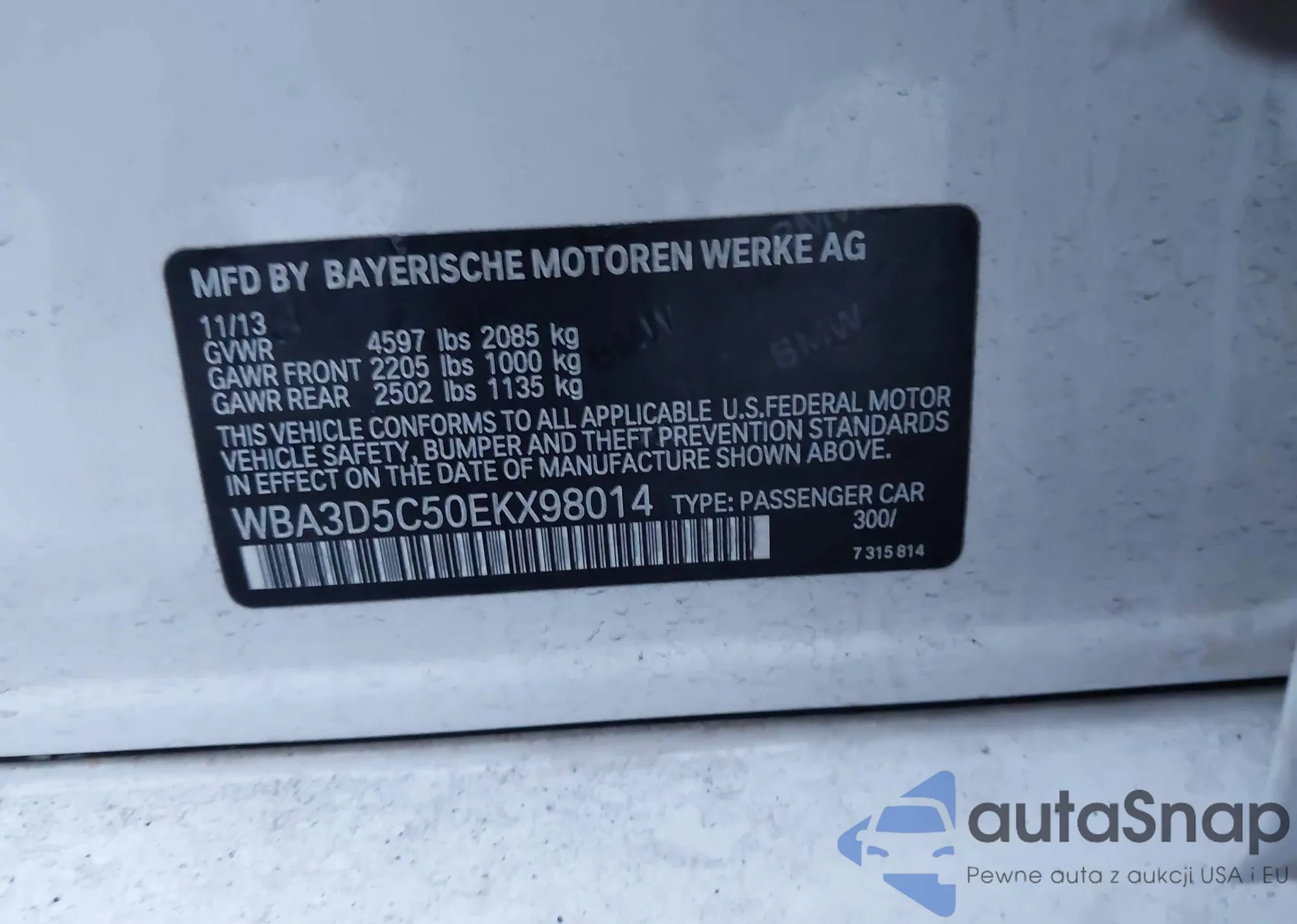 • VIN WBA3D5C50EKX98014
