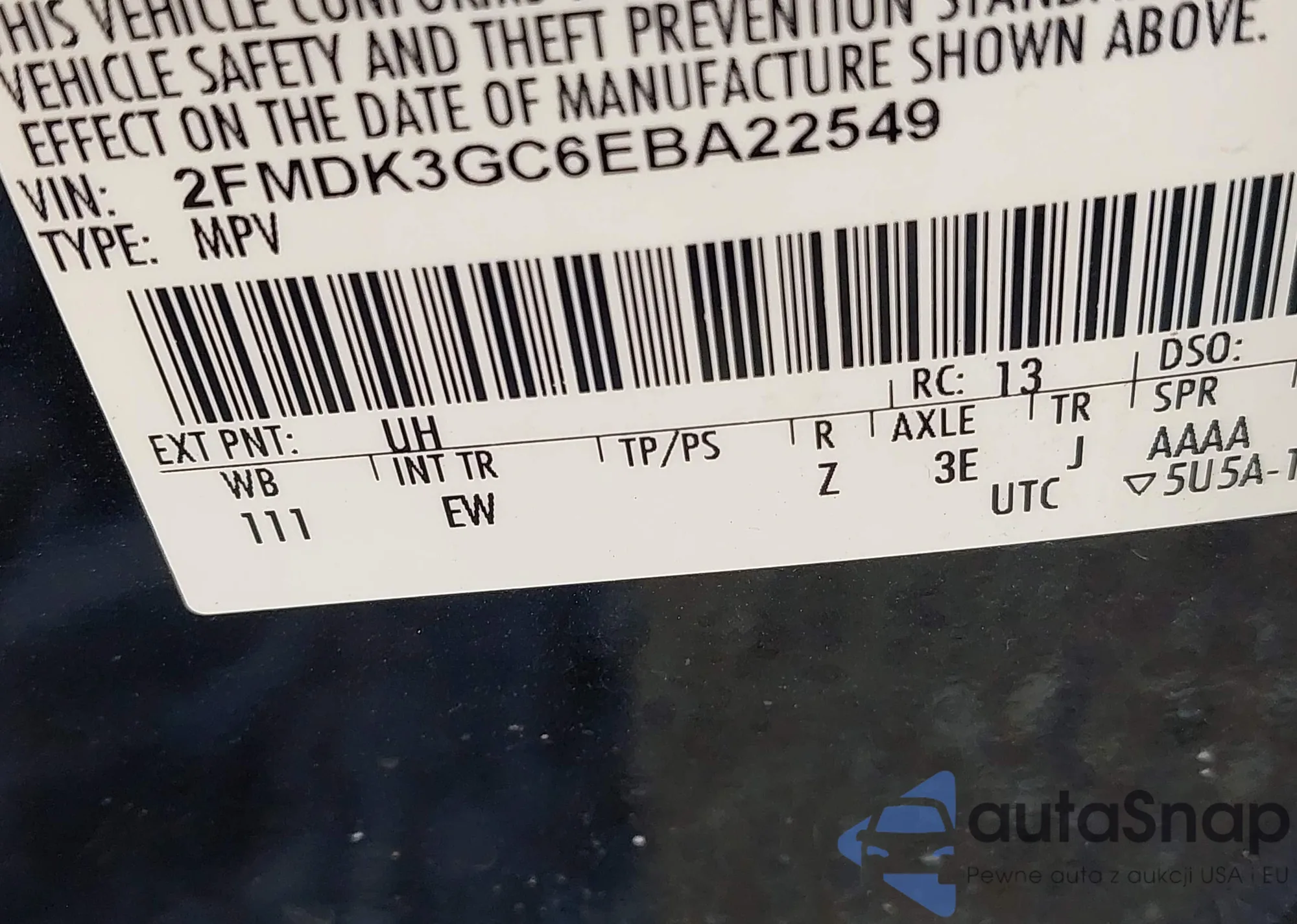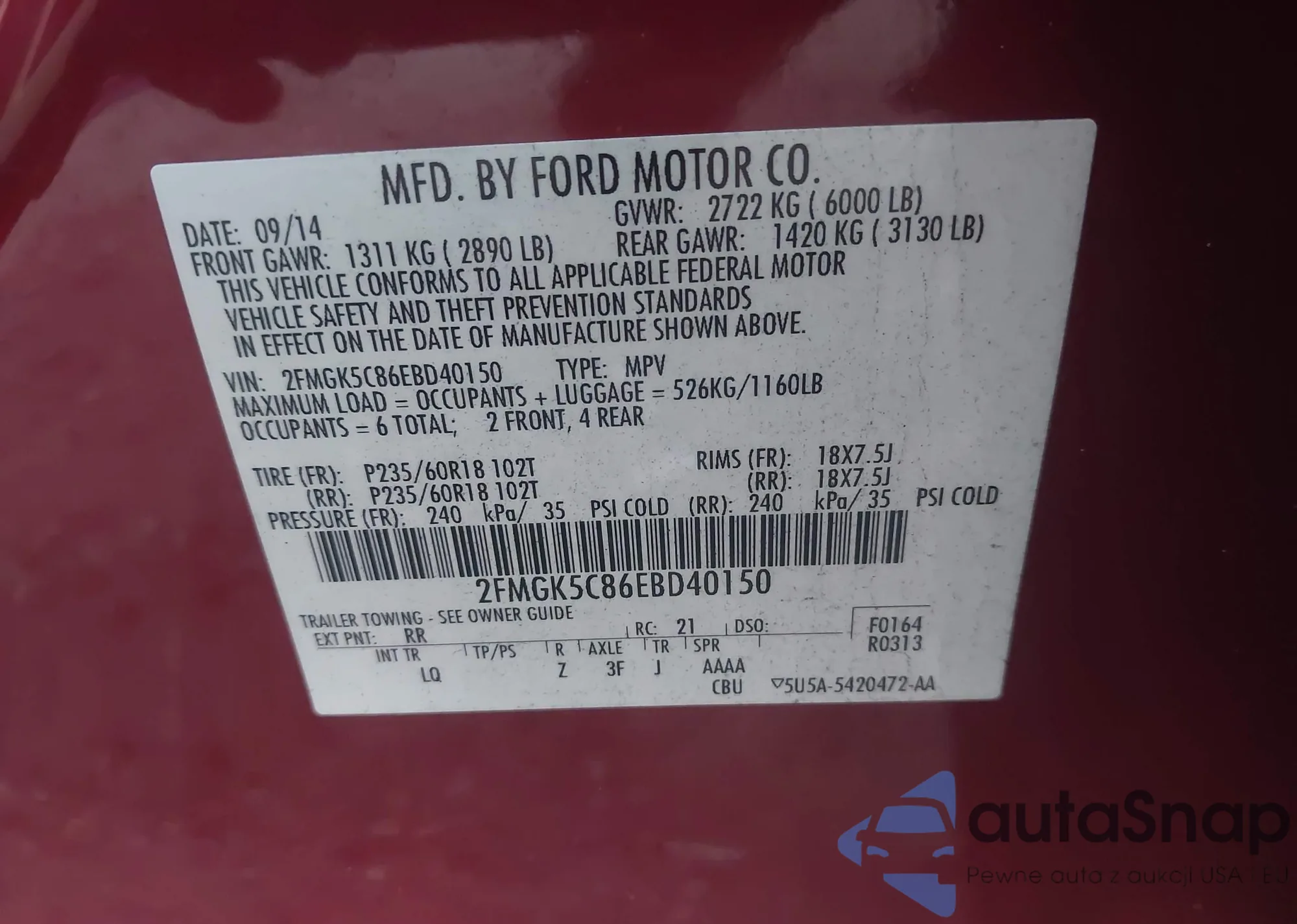 • VIN 2FMGK5C86EBD40150