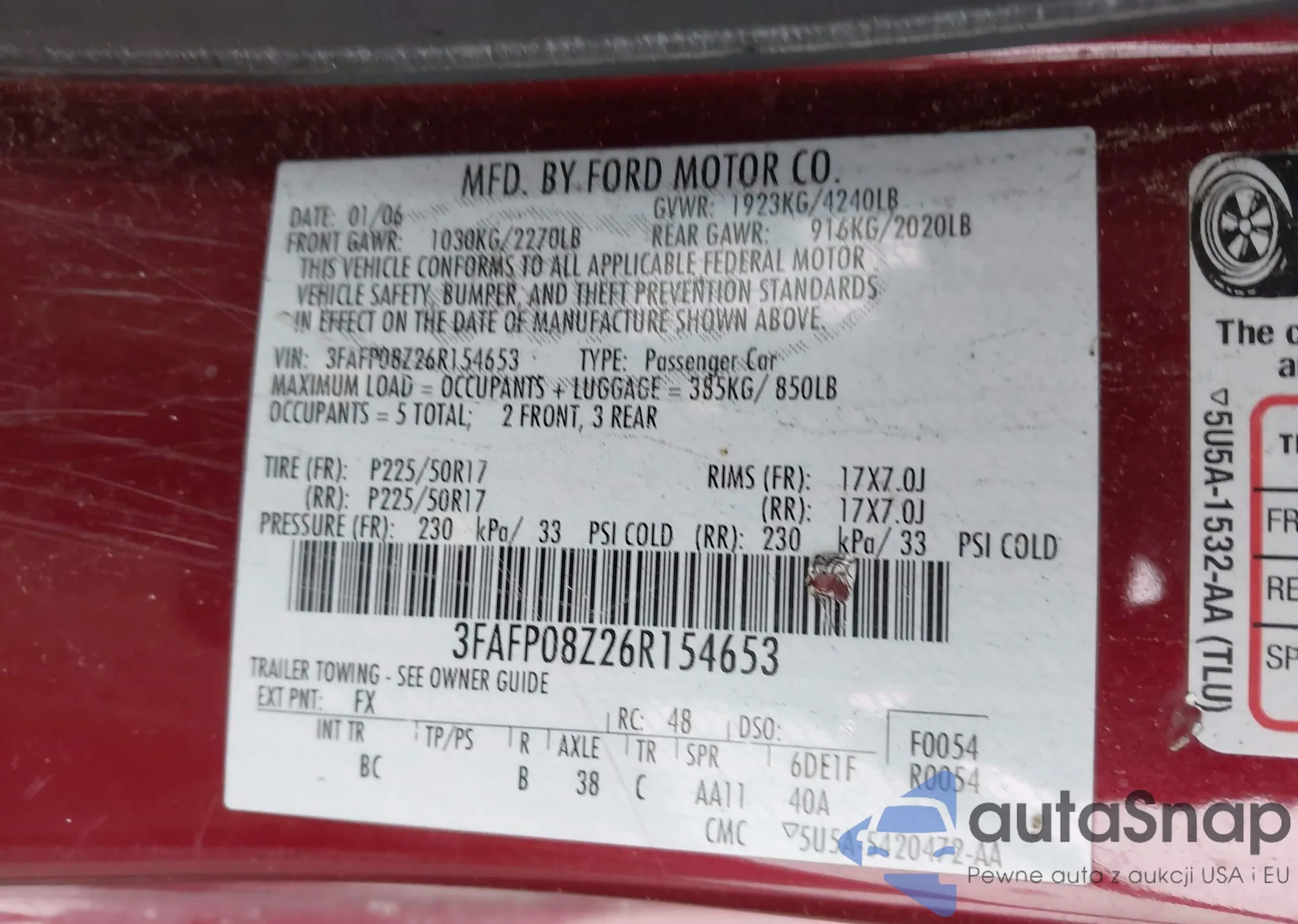 • VIN 3FAFP08Z26R154653