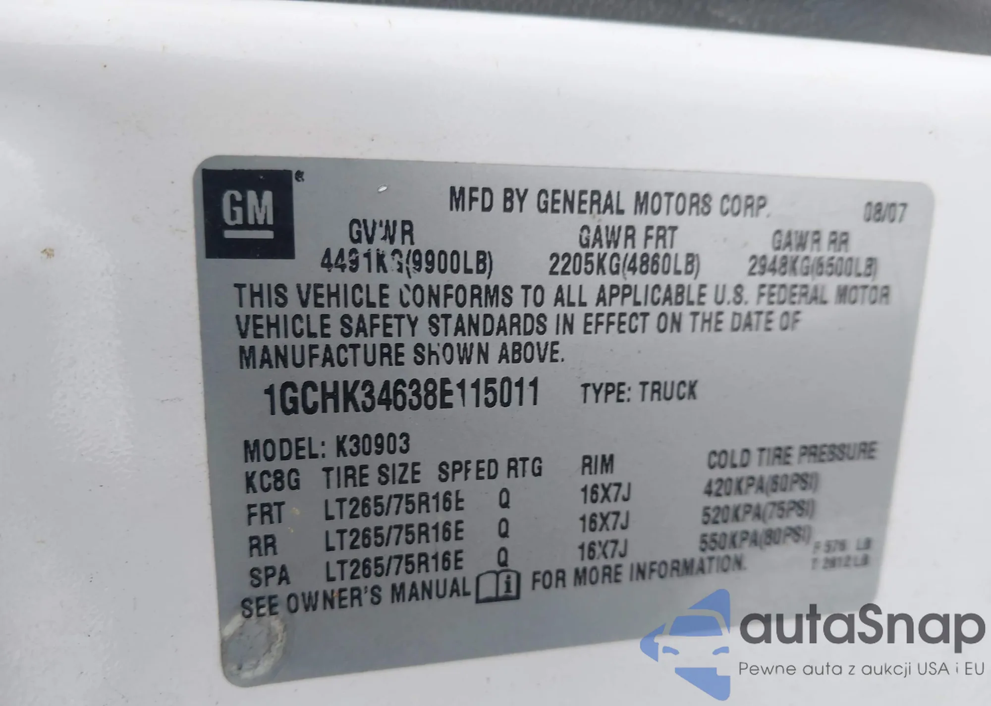 LOT: 43817257 VIN: 1GCHK34638E115011