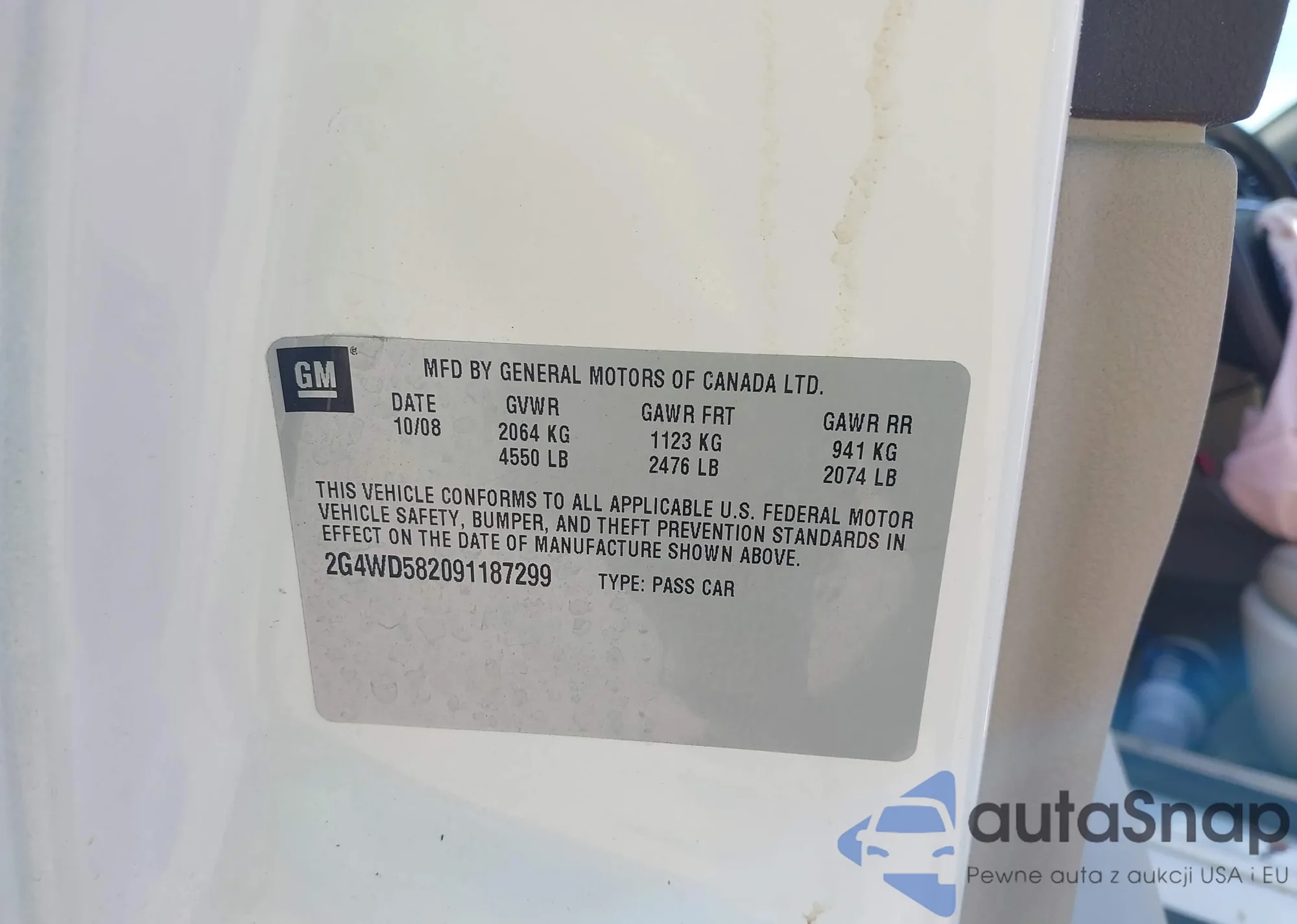 LOT: 39293790 VIN: 2G4WD582091187299