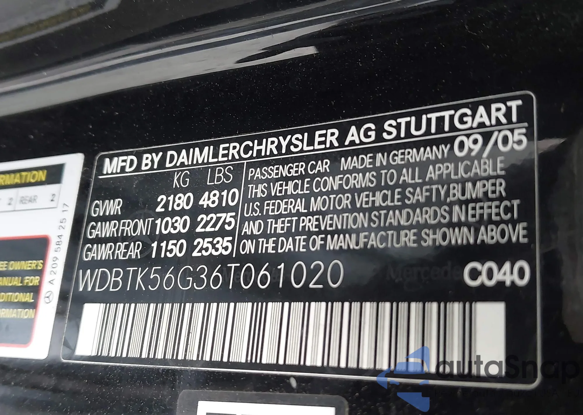LOT: 44009196 VIN: WDBTK56G36T061020