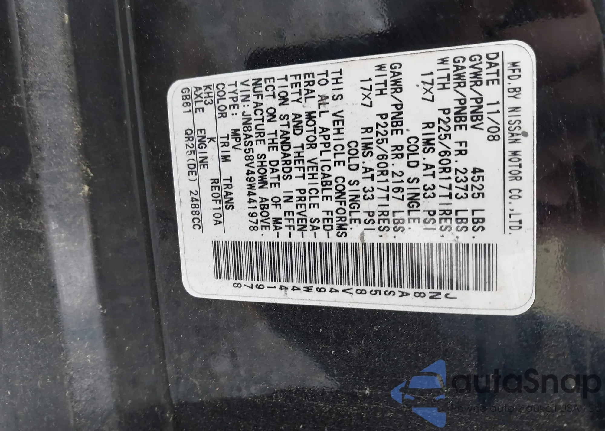 • VIN JN8AS5MV8AW137305
