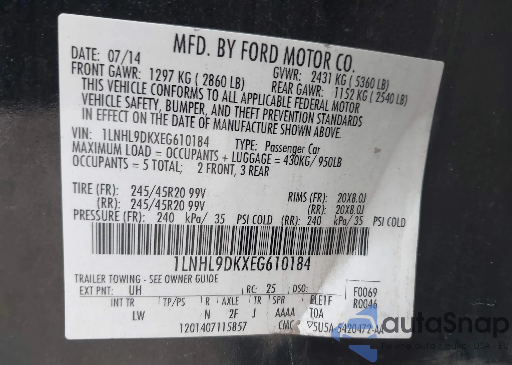 • VIN 5UXWX9C53D0A15293