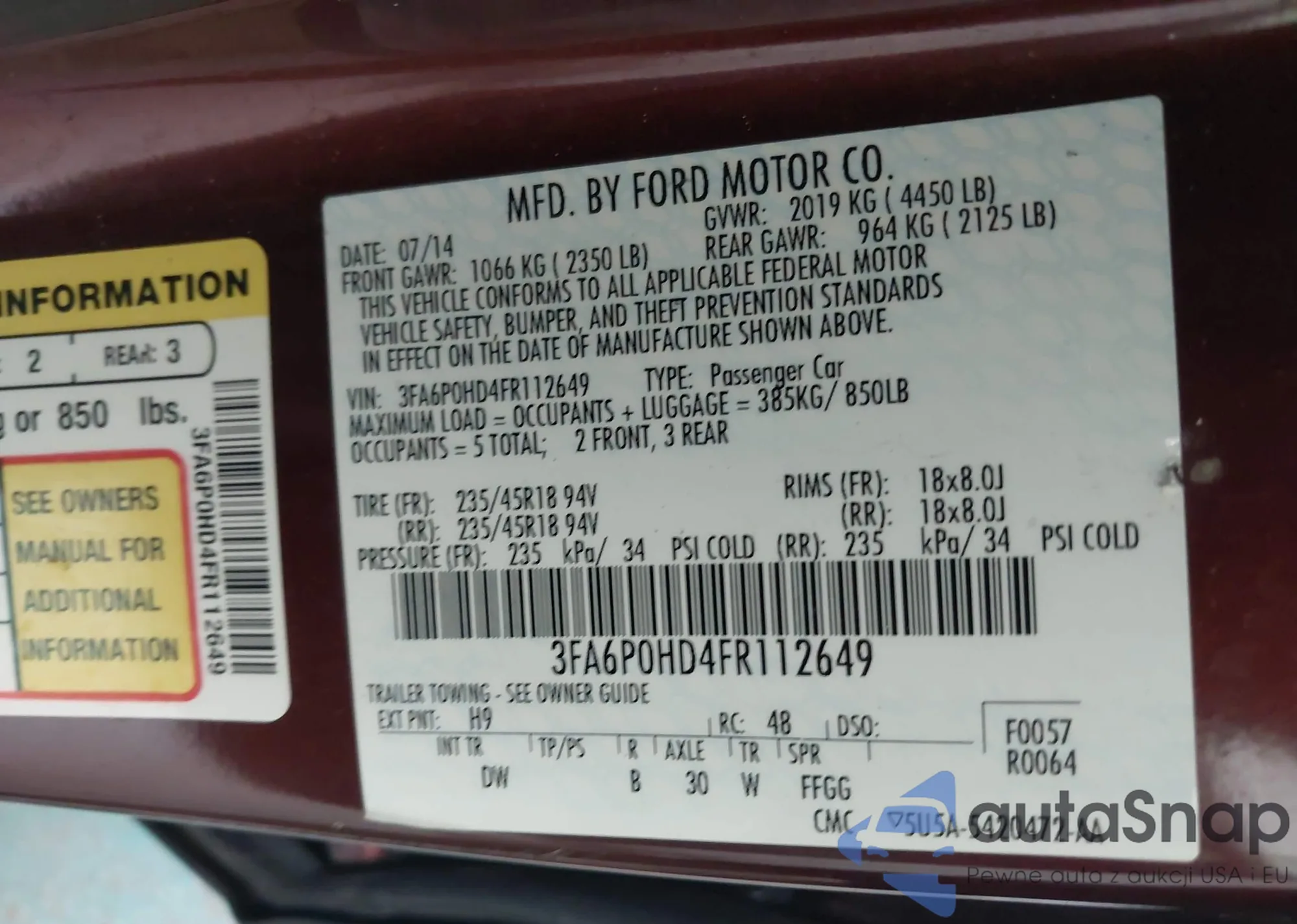 • VIN 3FA6P0HD4FR112649