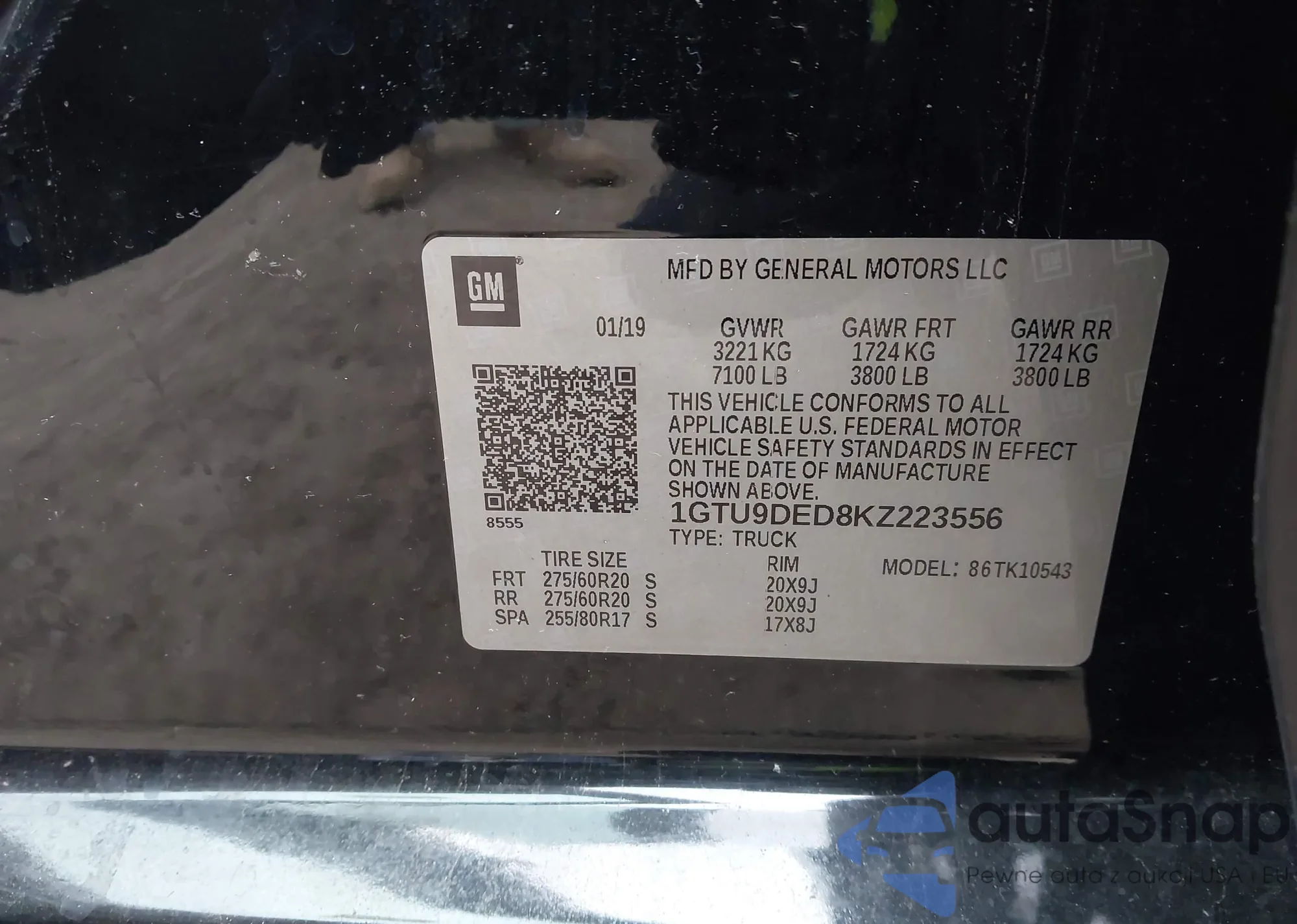 • VIN 1GTU9DED8KZ223556