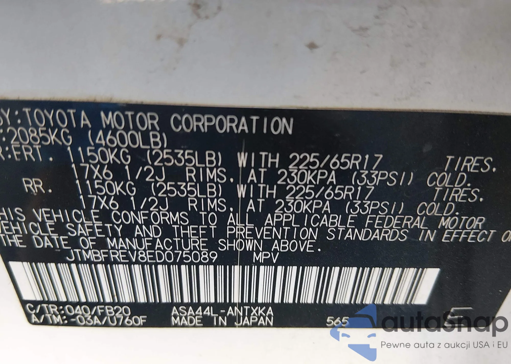 • VIN 4T1BK46K17U514571