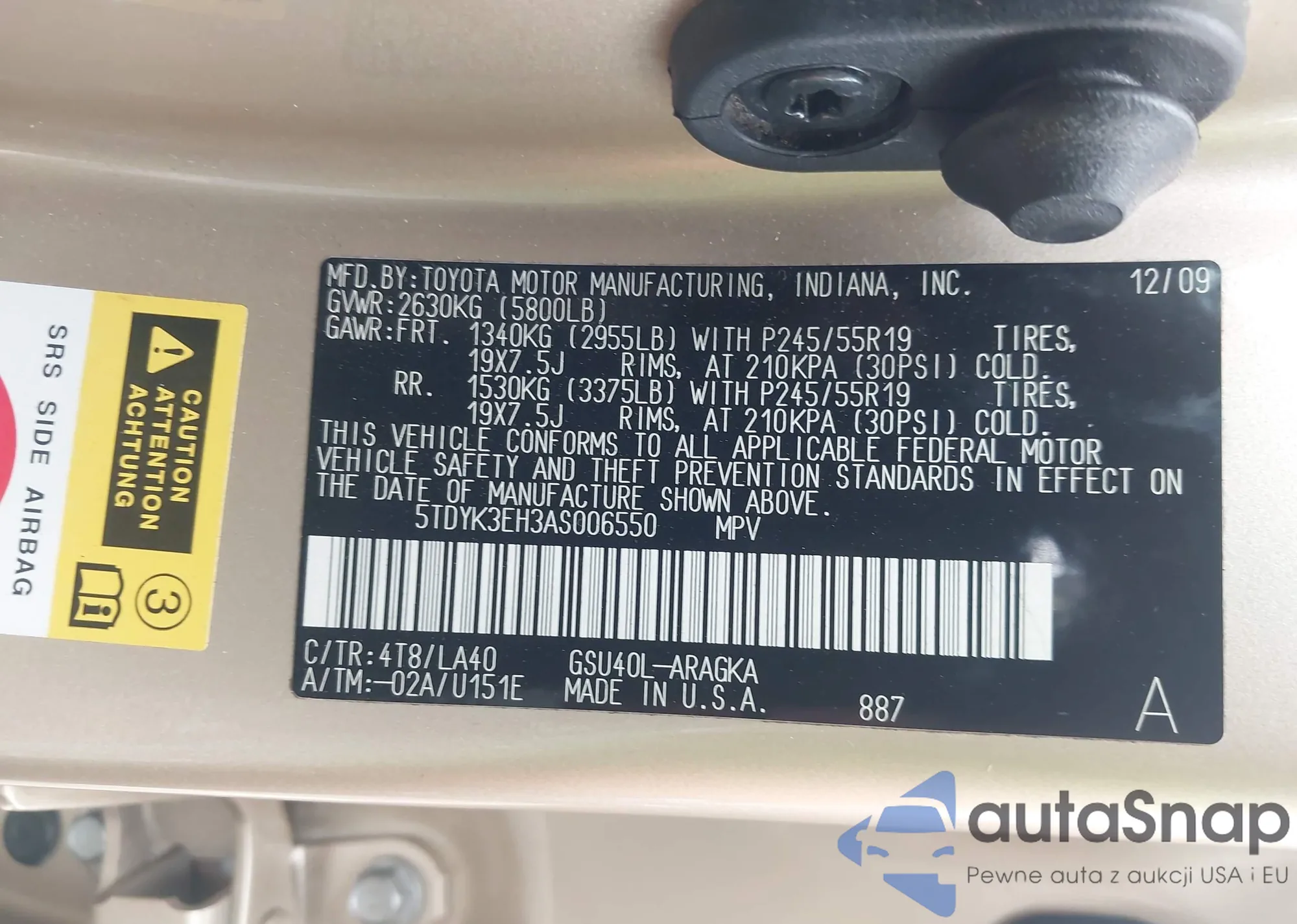 • VIN 5TDYK3EH3AS006550