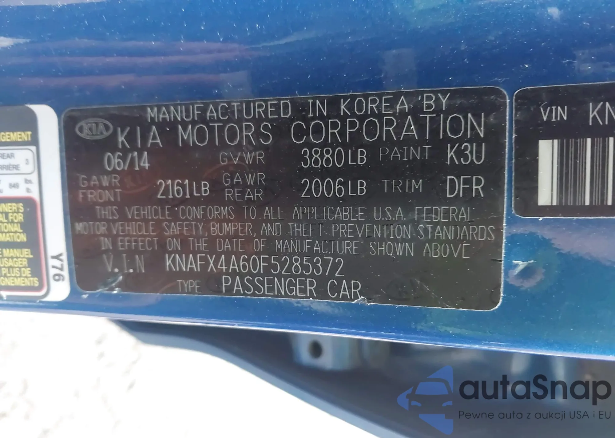 • VIN KNAFX4A60F5285372