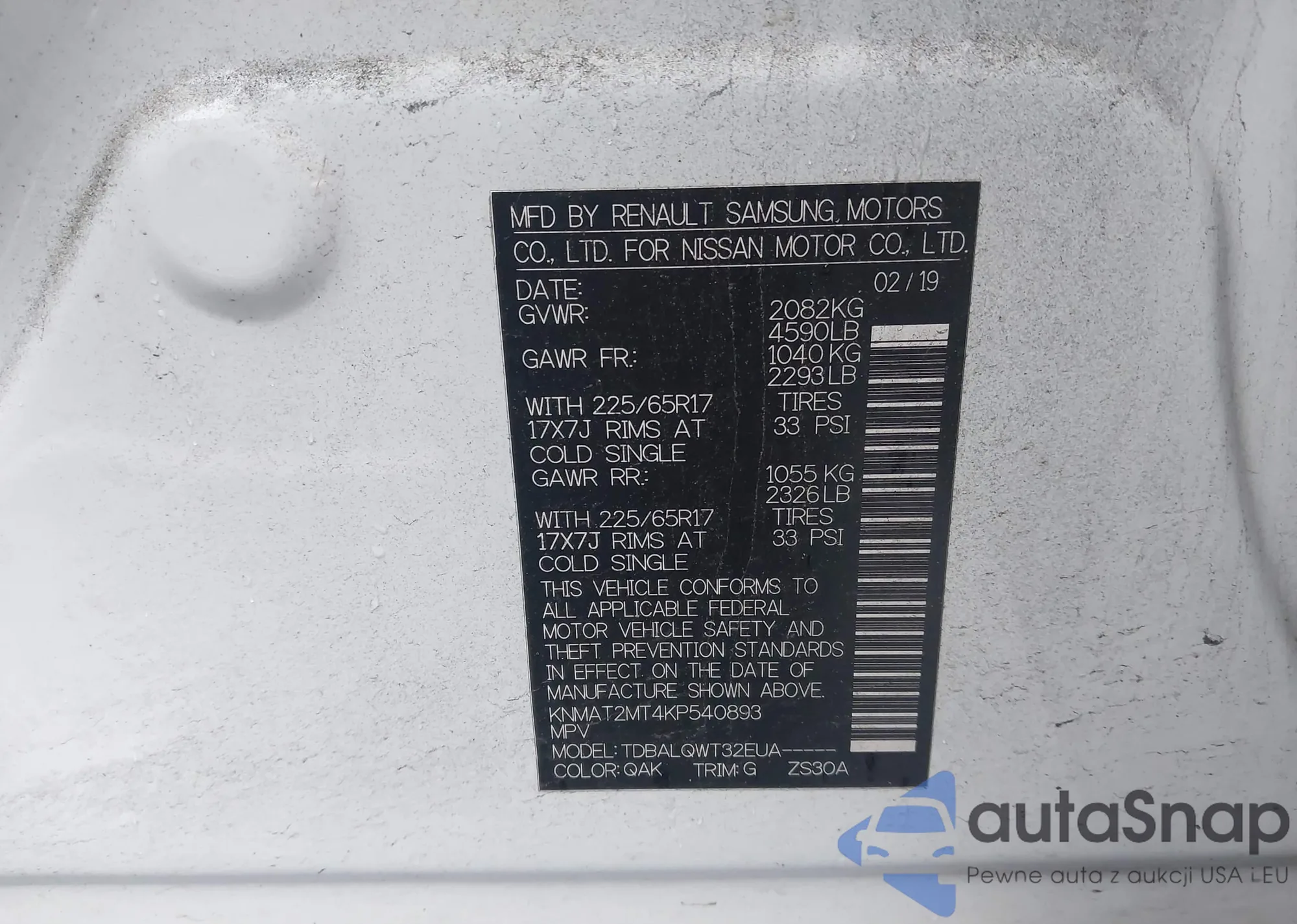 • VIN KNMAT2MT4KP540893