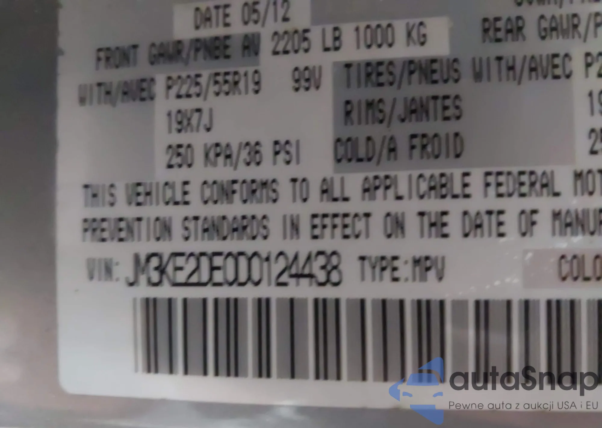 • VIN 2FMDK3J94DBB50879
