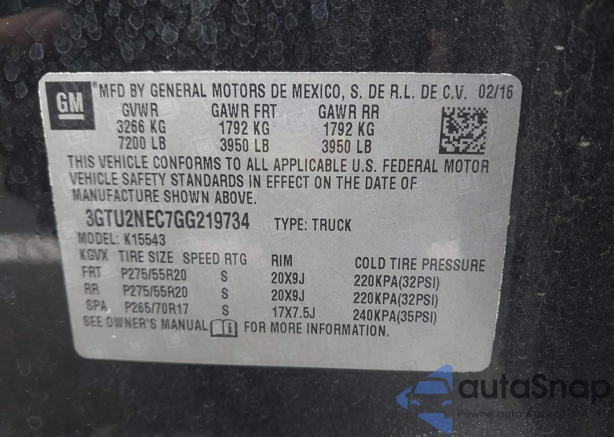 • VIN 3GTU2NEC7GG219734