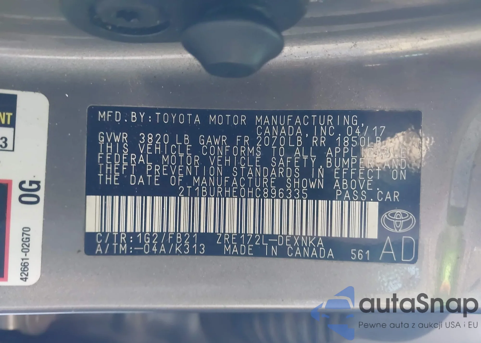 • VIN 2T1BURHE0HC896335