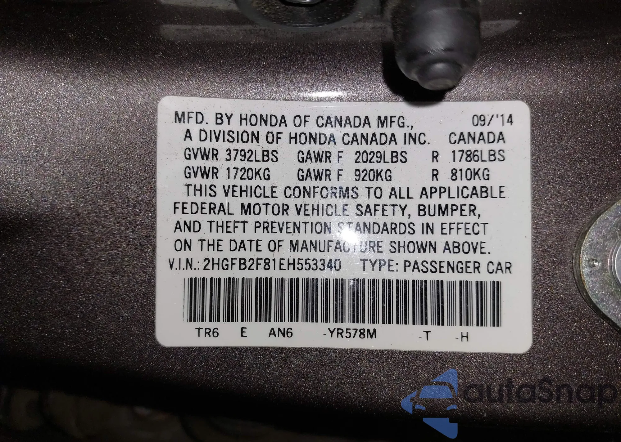 • VIN 2HGFB2F81EH553340