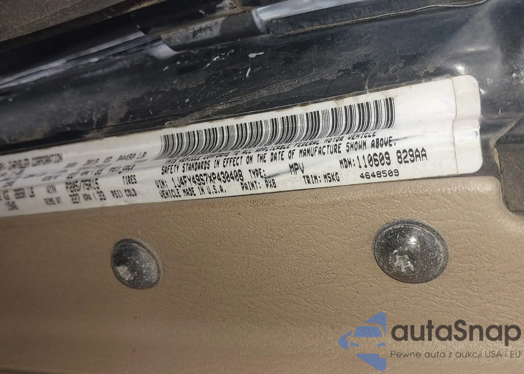 LOT: 43702404 VIN: 1J4FY49S7XP430408