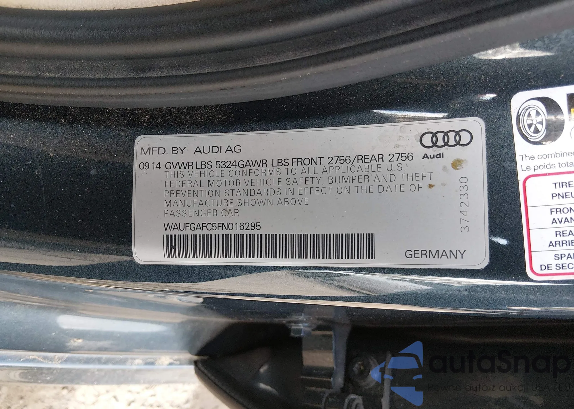 LOT: 43917136 VIN: WAUFGAFC5FN016295