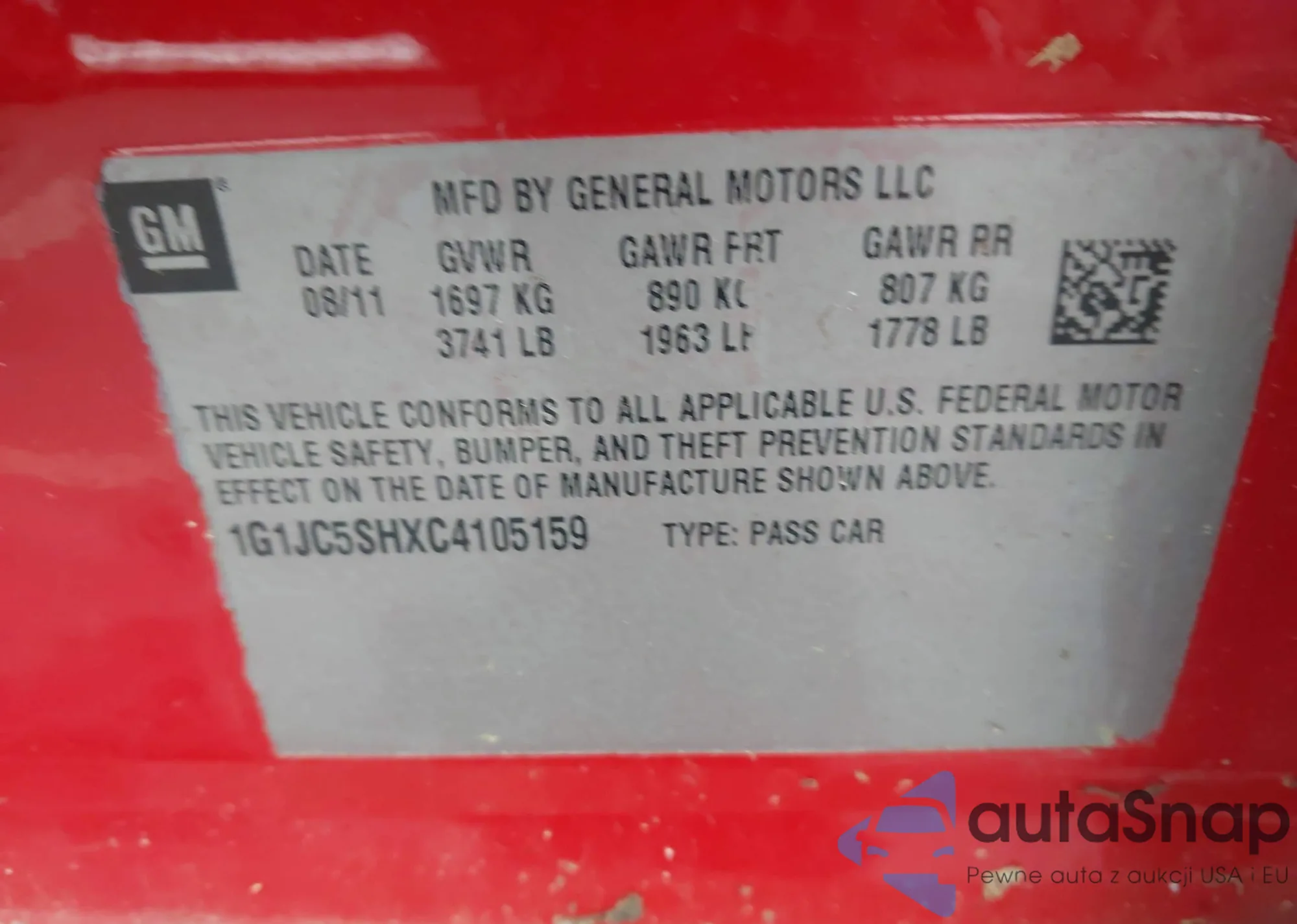 • VIN 1G1JC5SHXC4105159