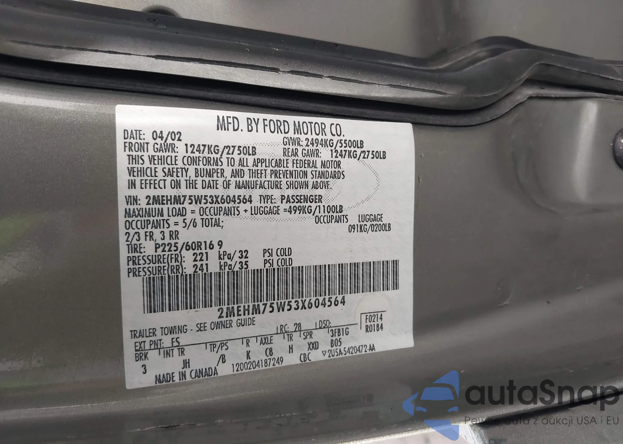LOT: 43955428 VIN: 2MEHM75W53X604564