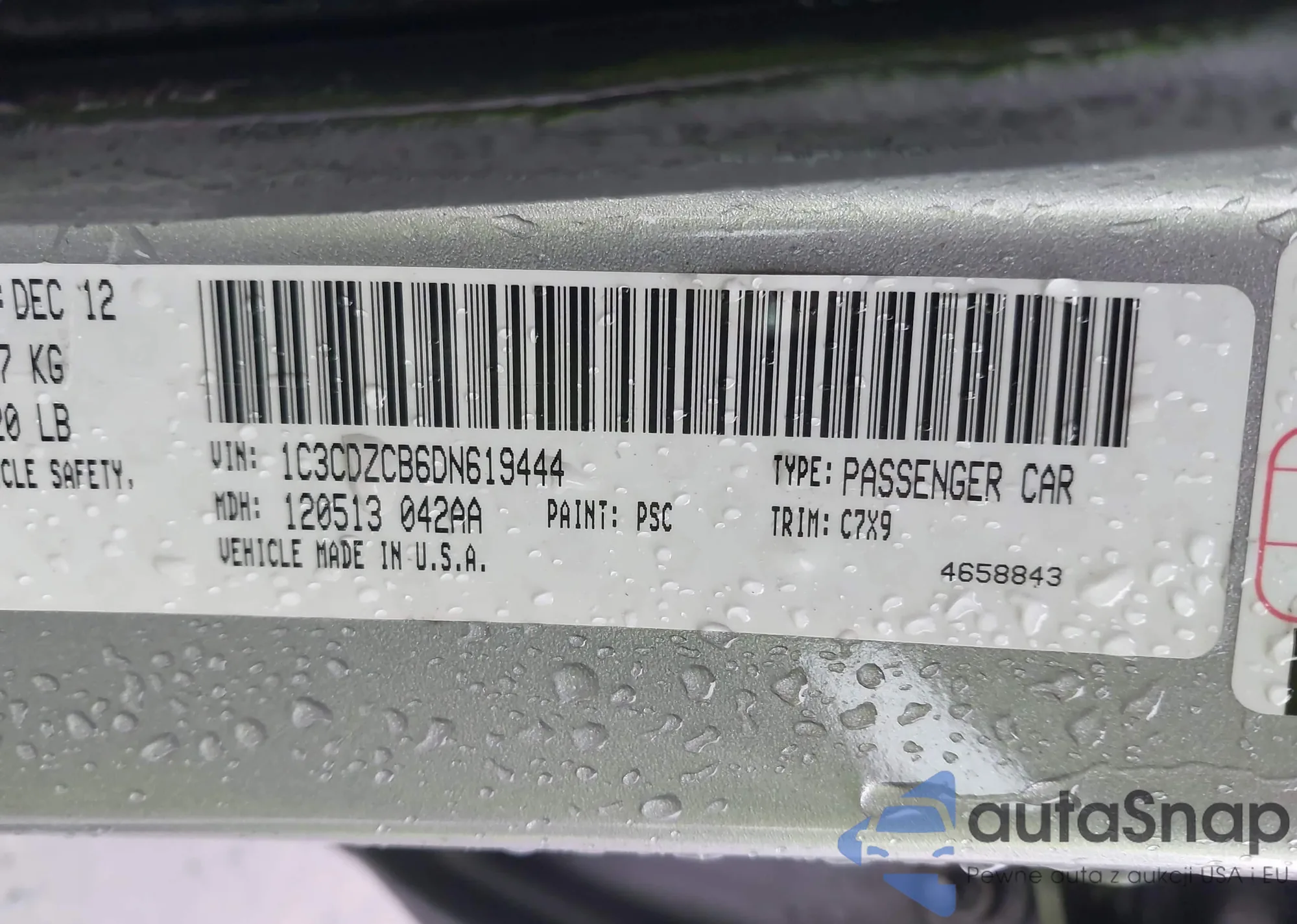LOT: 43977904 VIN: 1C3CDZCB6DN619444