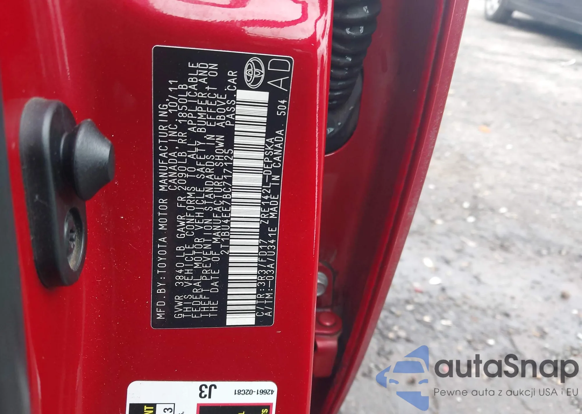 • VIN 2T1BU4EE7BC717125