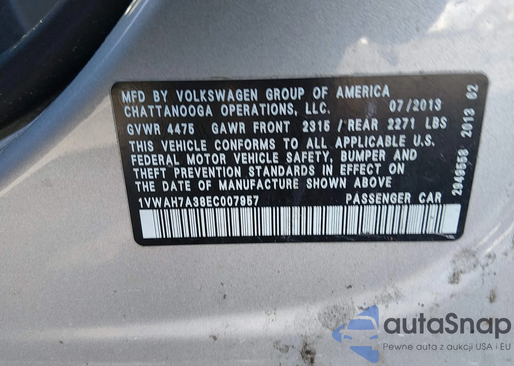 • VIN 1VWAH7A38EC007957