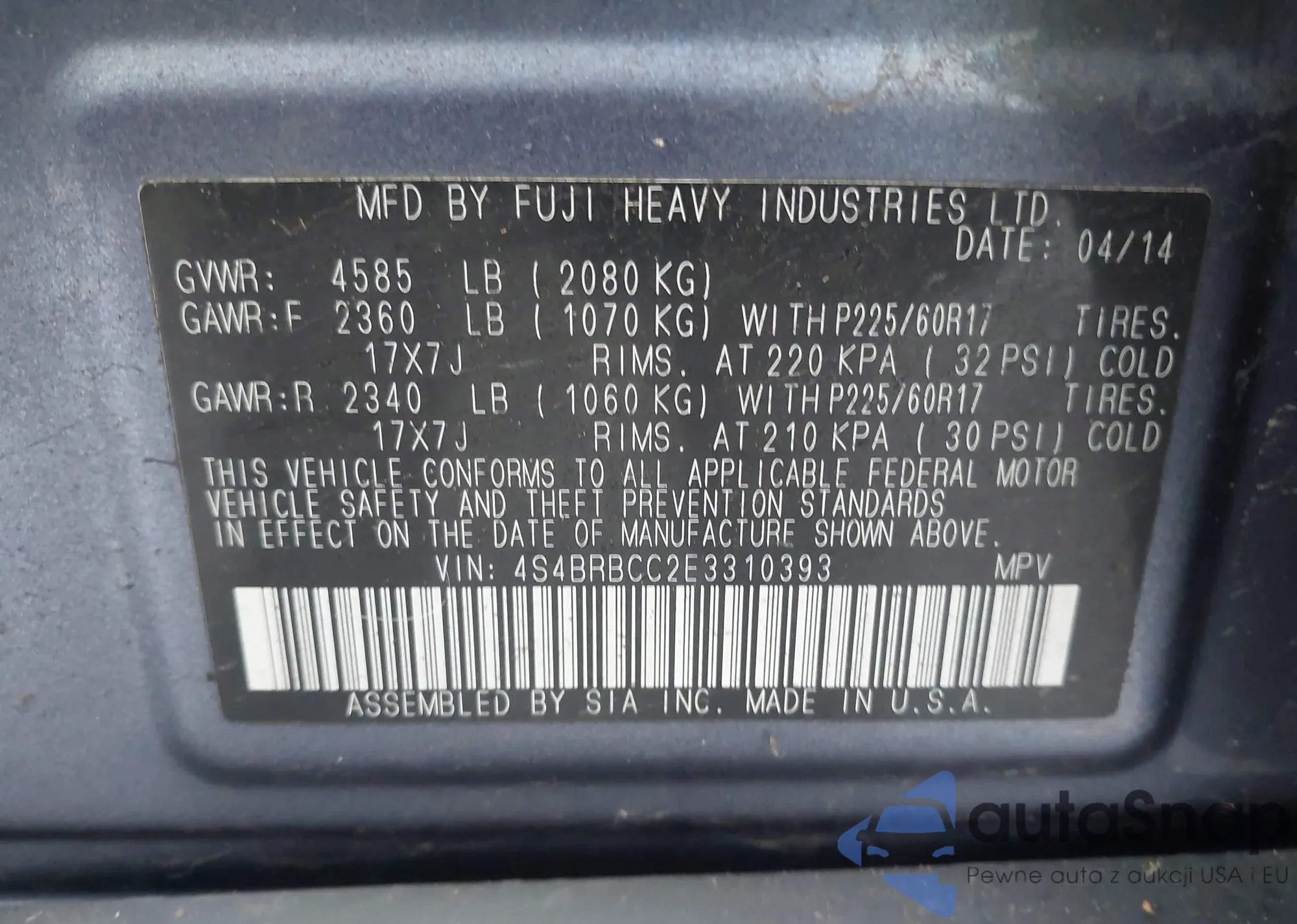 • VIN 5FNRL5H44EB081404