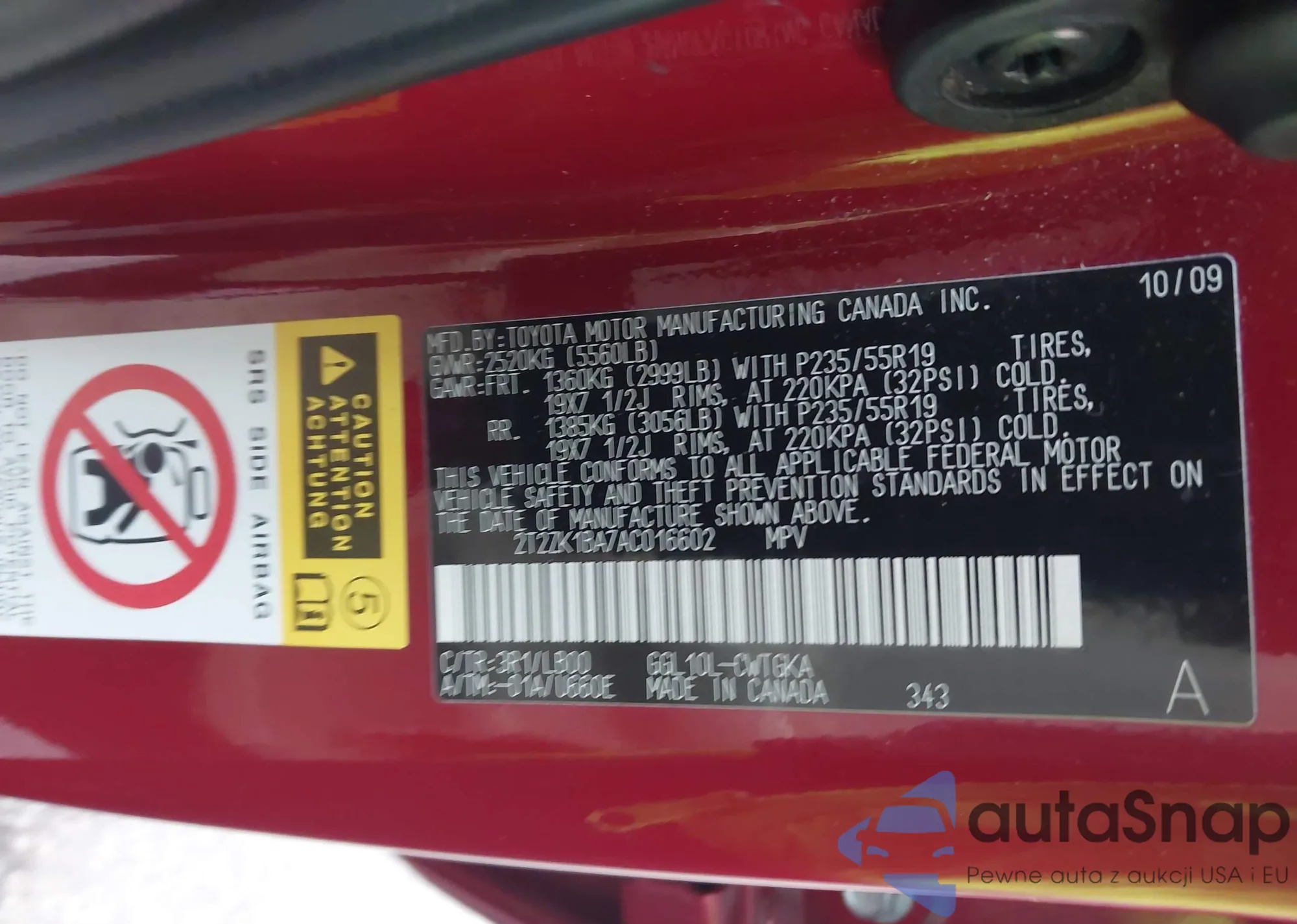 • VIN 2T2ZK1BA7AC016602