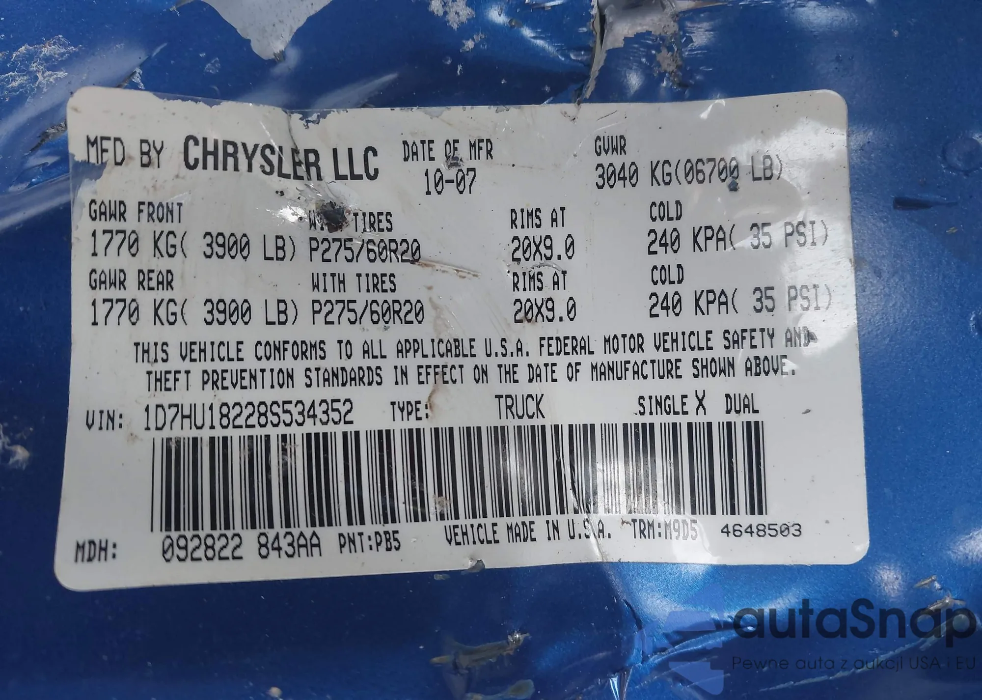 • VIN 1D7HU18228S534352