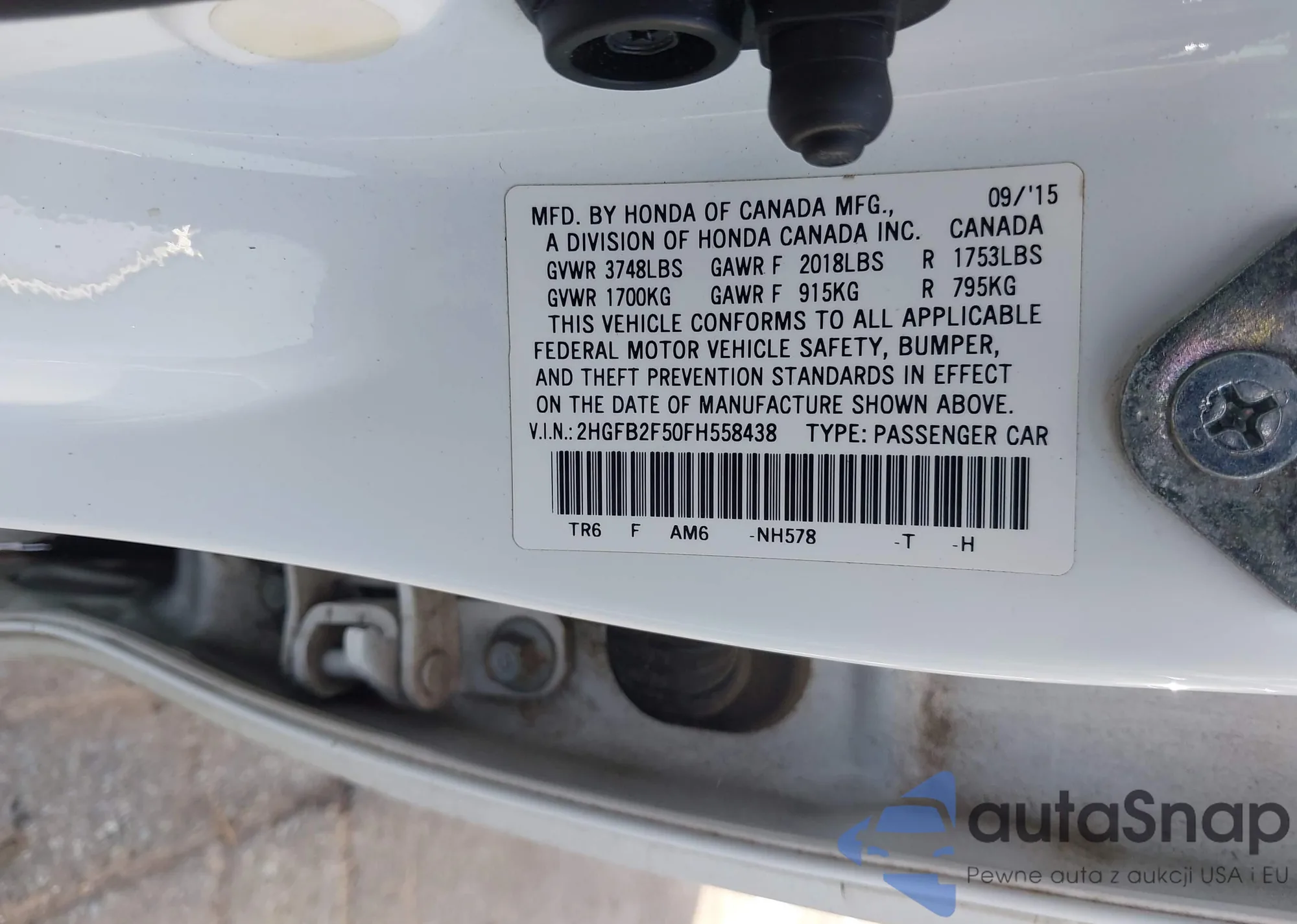 • VIN 2HGFB2F50FH558438