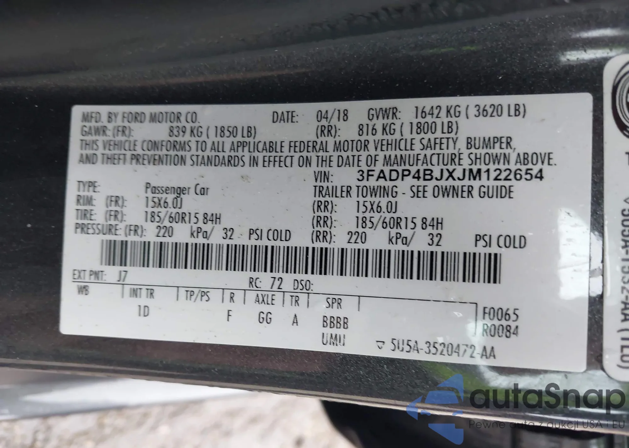LOT: 44170923 VIN: 1FMCU0J98JUB16793