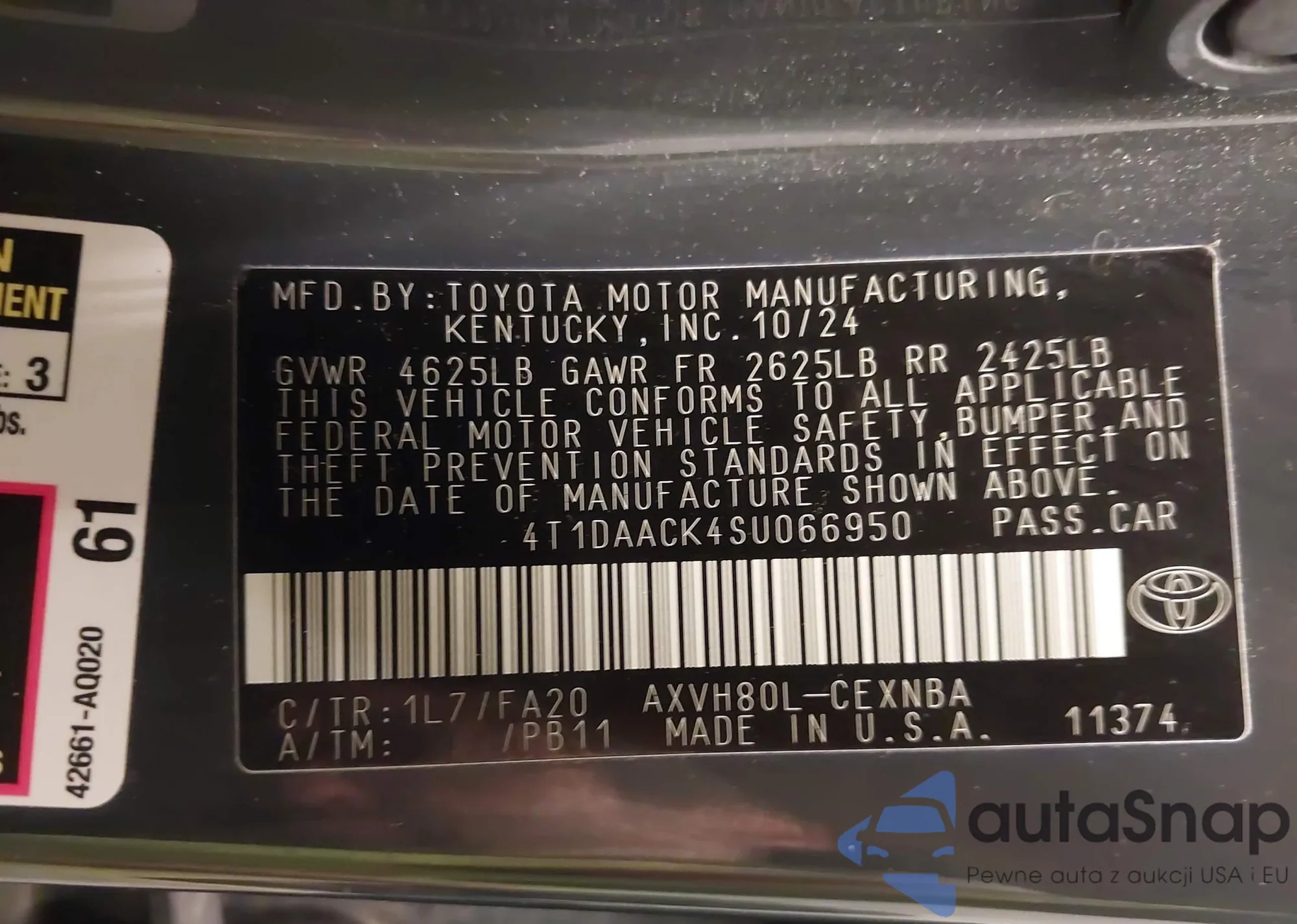 • VIN 4T1DAACK4SU066950