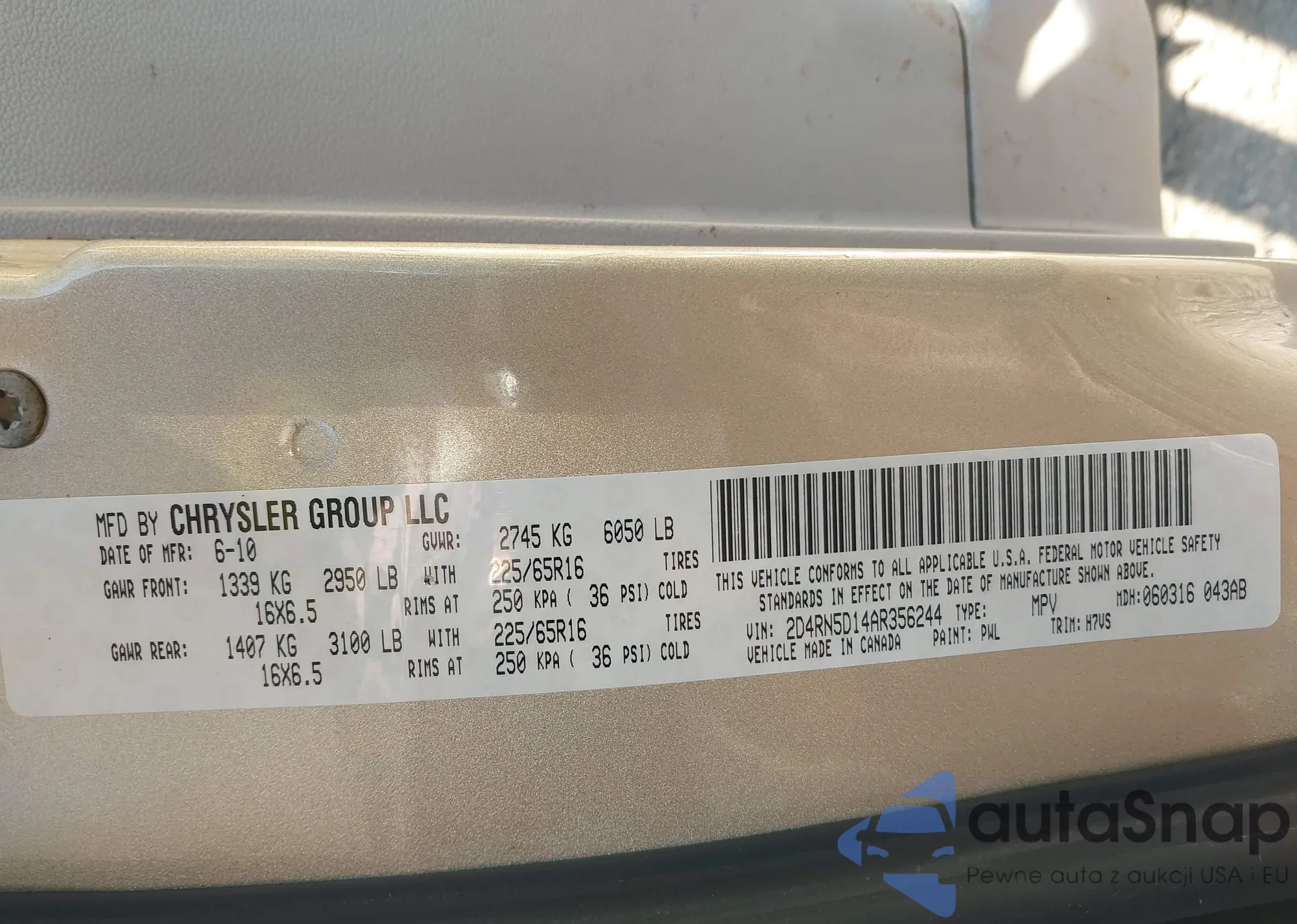• VIN 2D4RN5D14AR356244