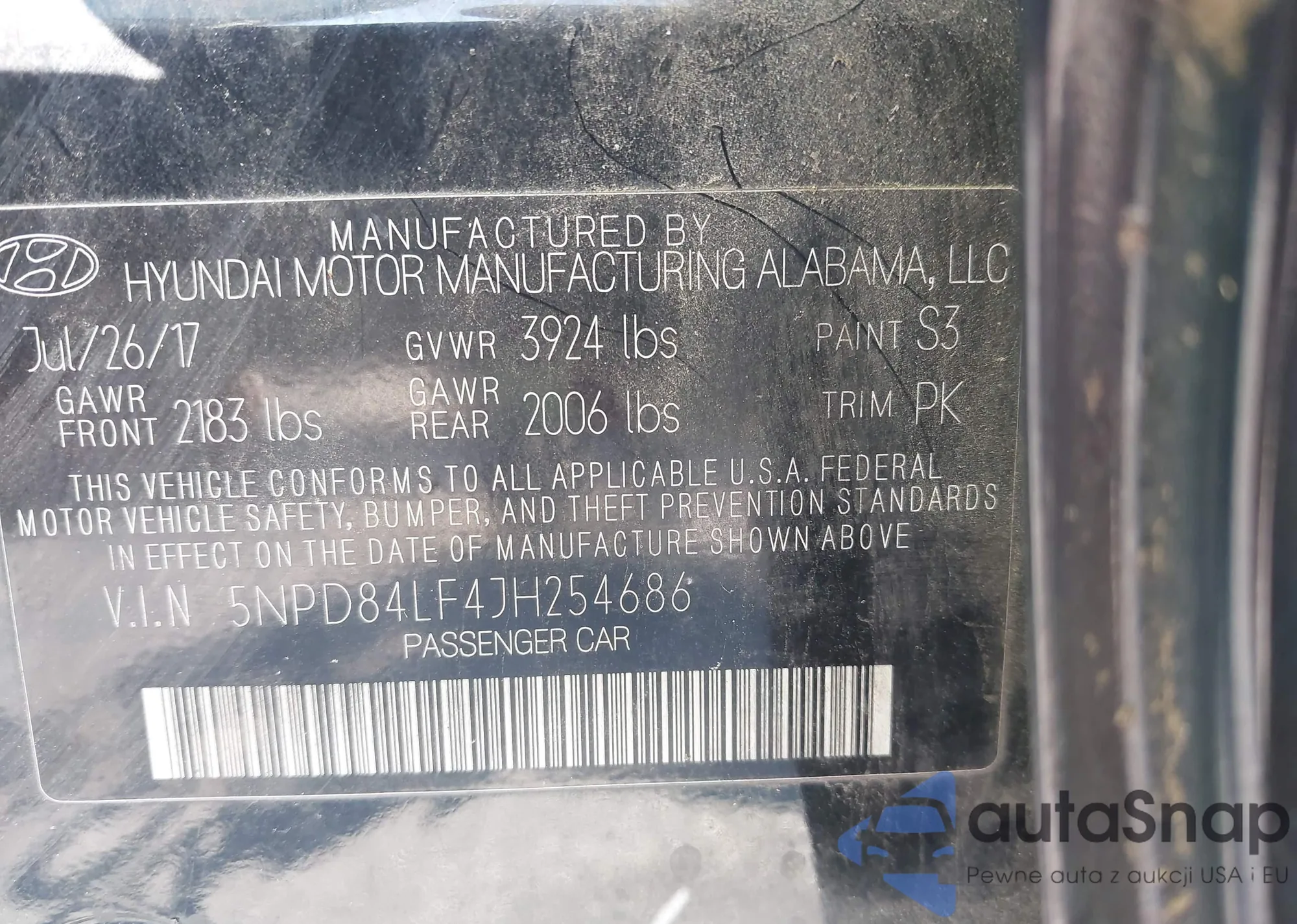 LOT: 43353671 VIN: 5NPD84LF4JH254686