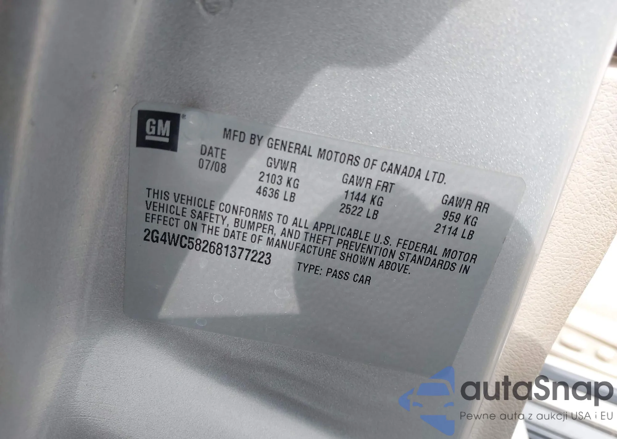 • VIN 2G4WC582681377223