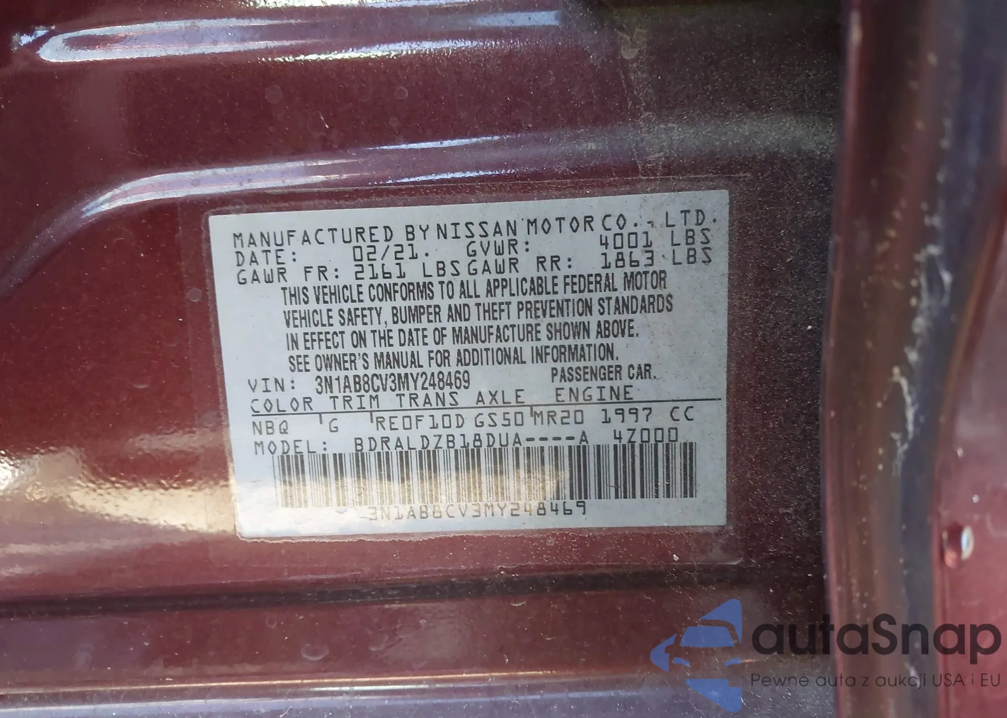 • VIN 3N1AB8CV3MY248469