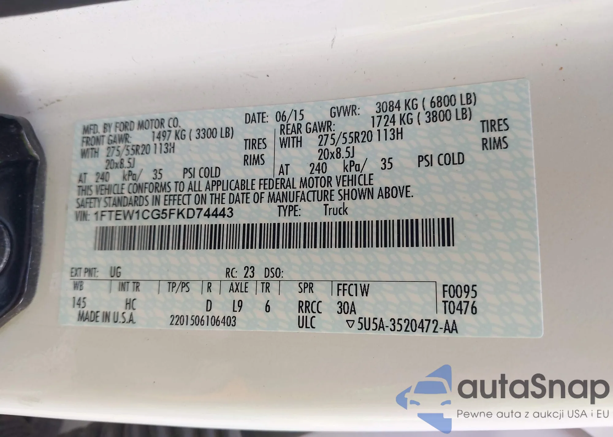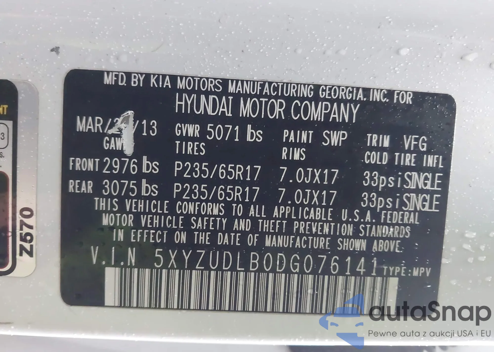 • VIN 5XYZUDLB0DG076141