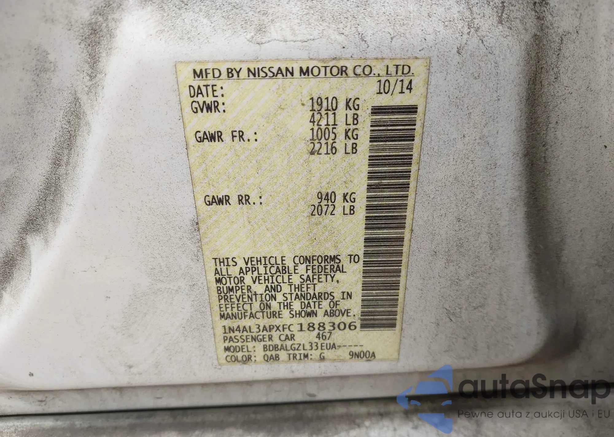LOT: 44076489 VIN: 1N4AL3APXFC188306