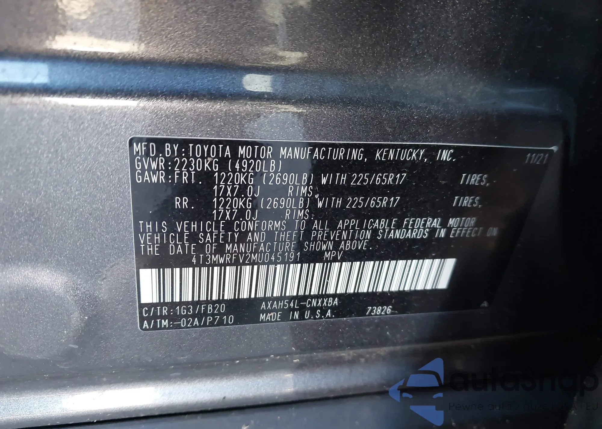 LOT: 44041893 VIN: 2T3BFREV6JW745087