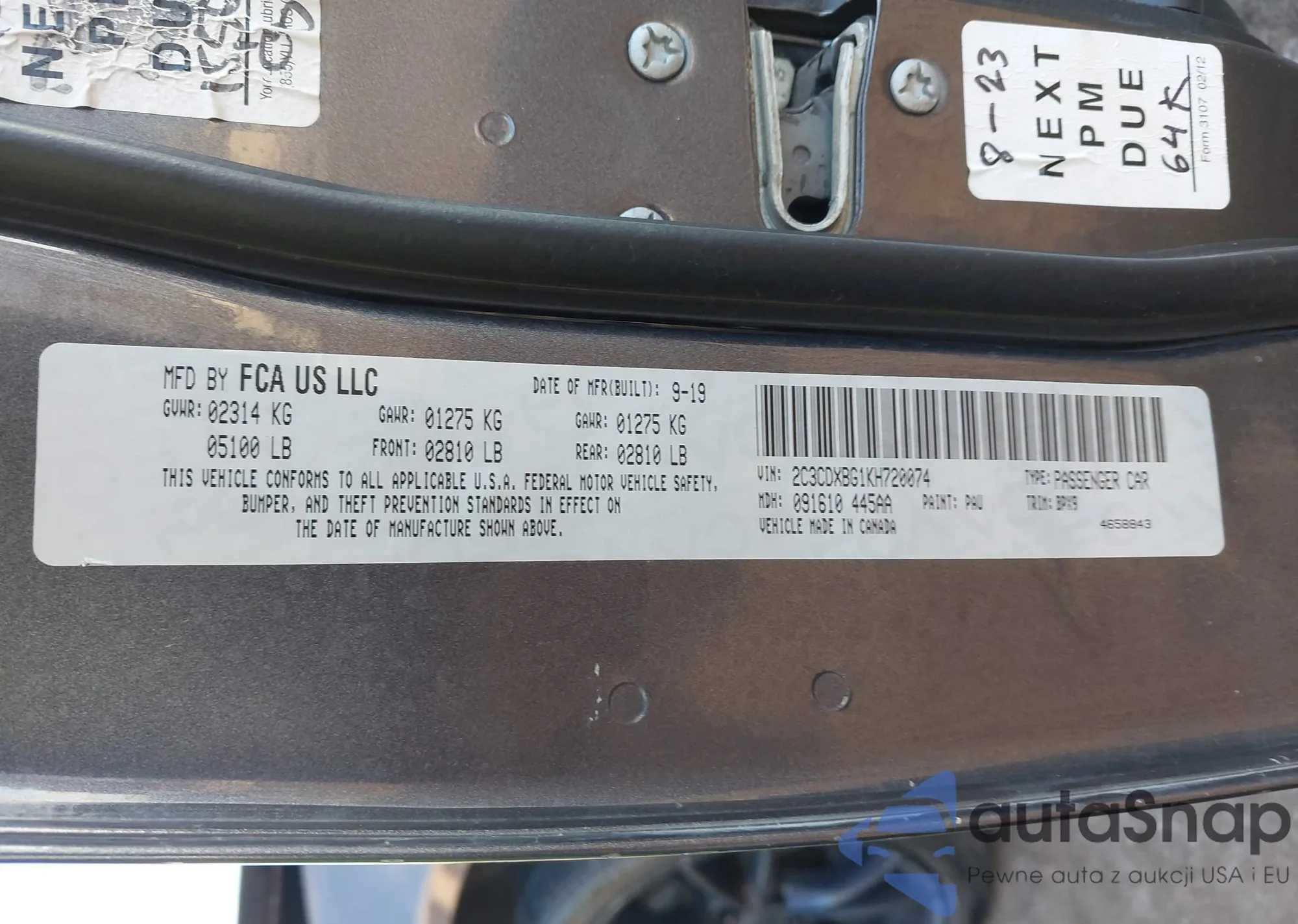 • VIN 2C3CDXBG1KH720074