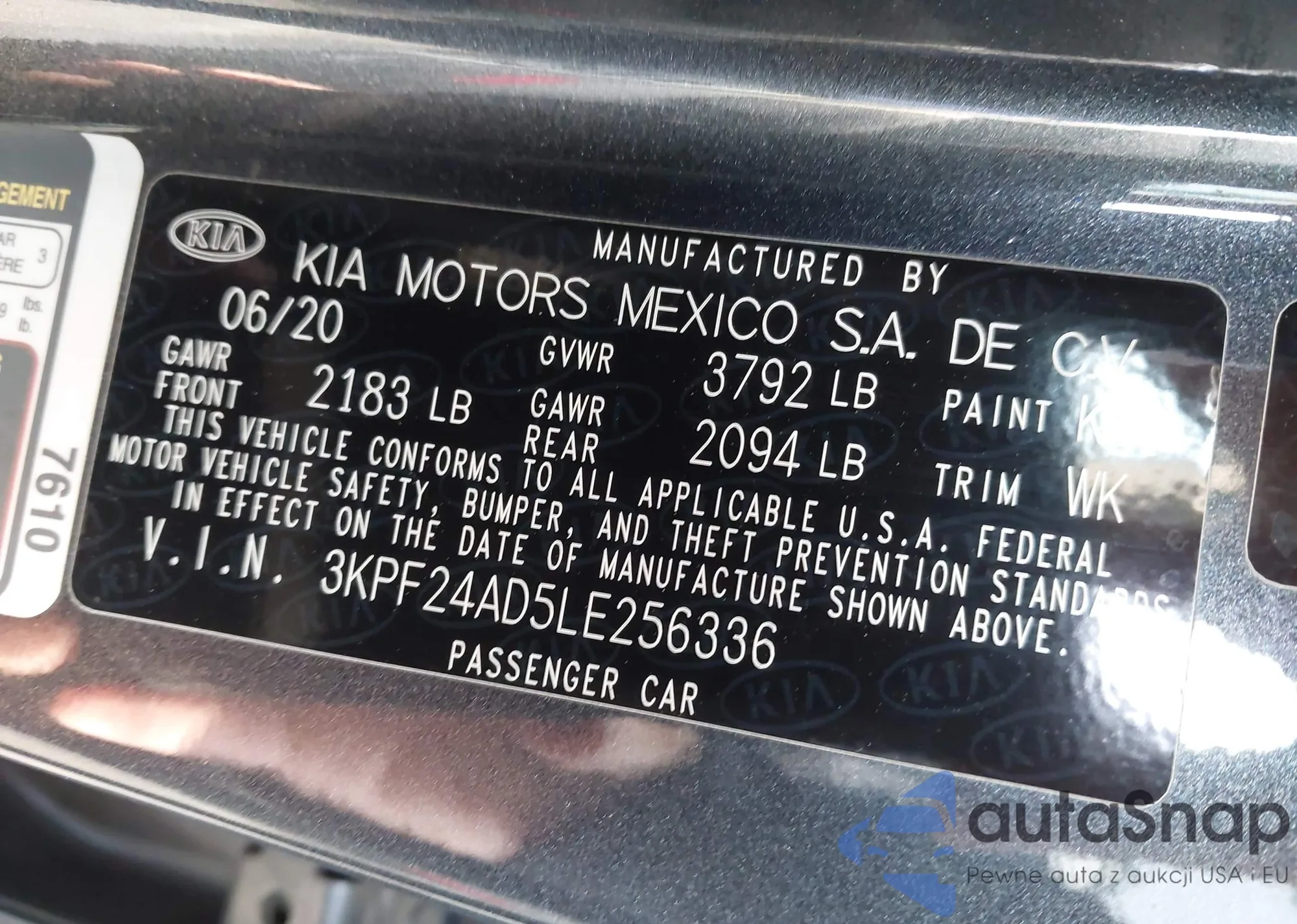 • VIN 3KPF24AD5LE256336