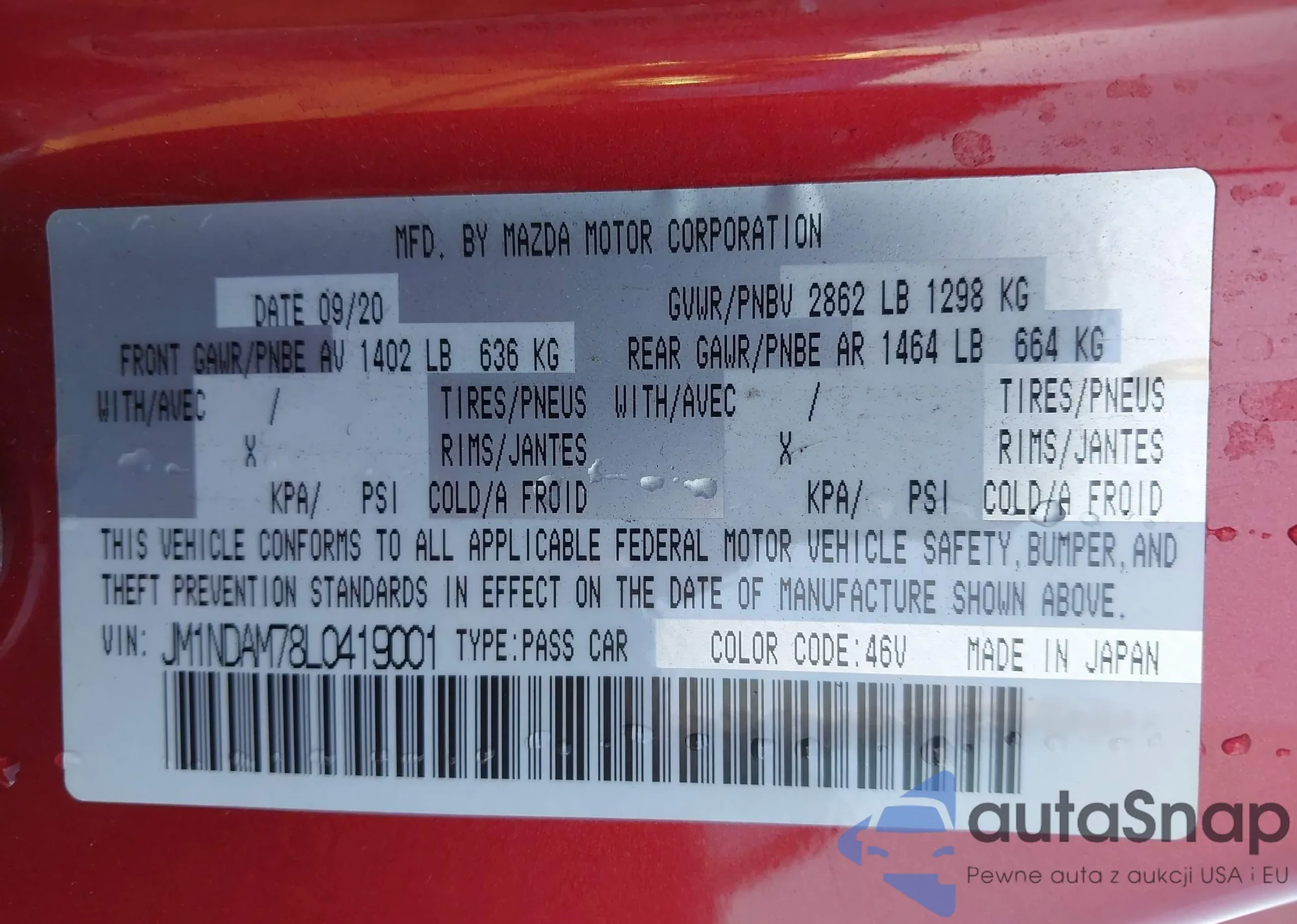 • VIN WAUKMAF41JA049066