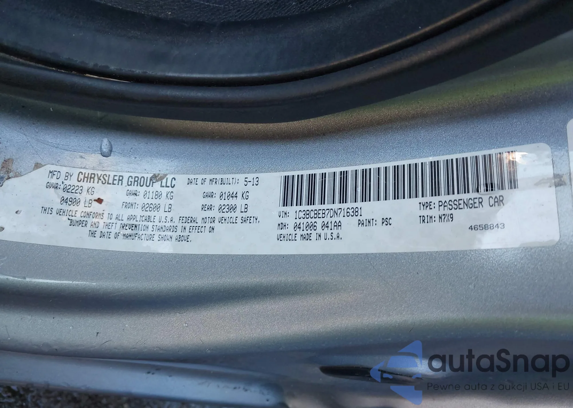 LOT: 43912898 VIN: 1C3BCBEB7DN716381