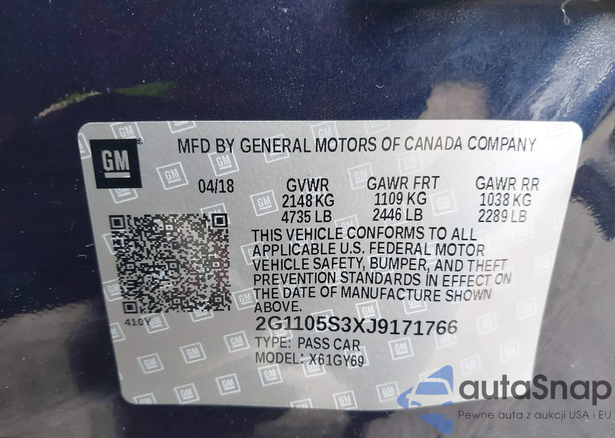 • VIN 2G1105S3XJ9171766