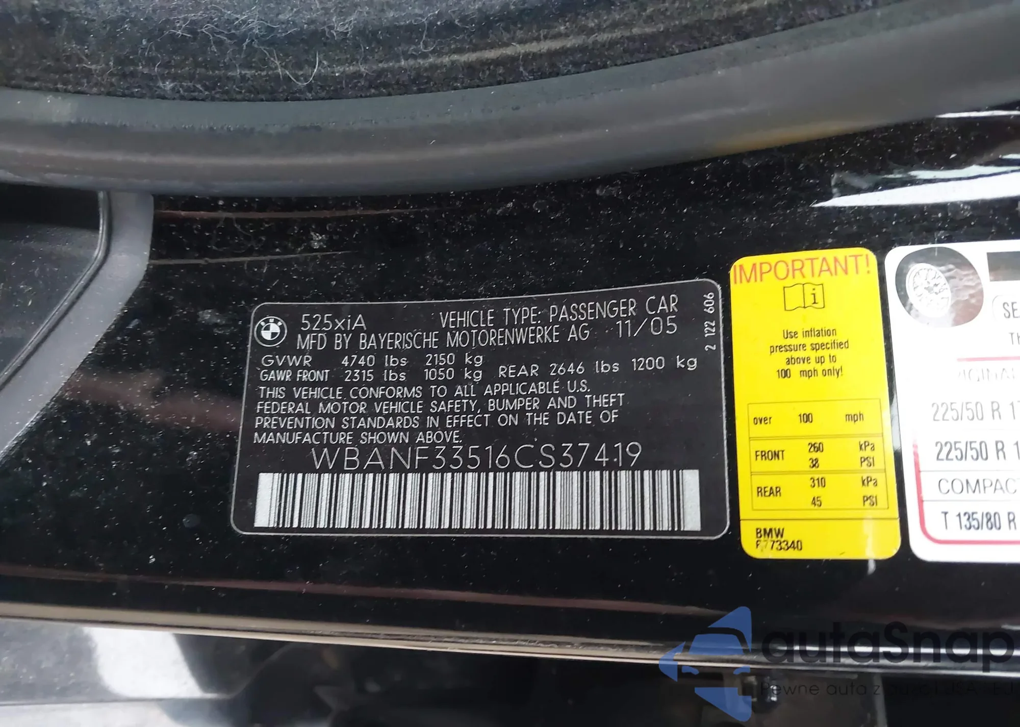 • VIN WBANF33516CS37419