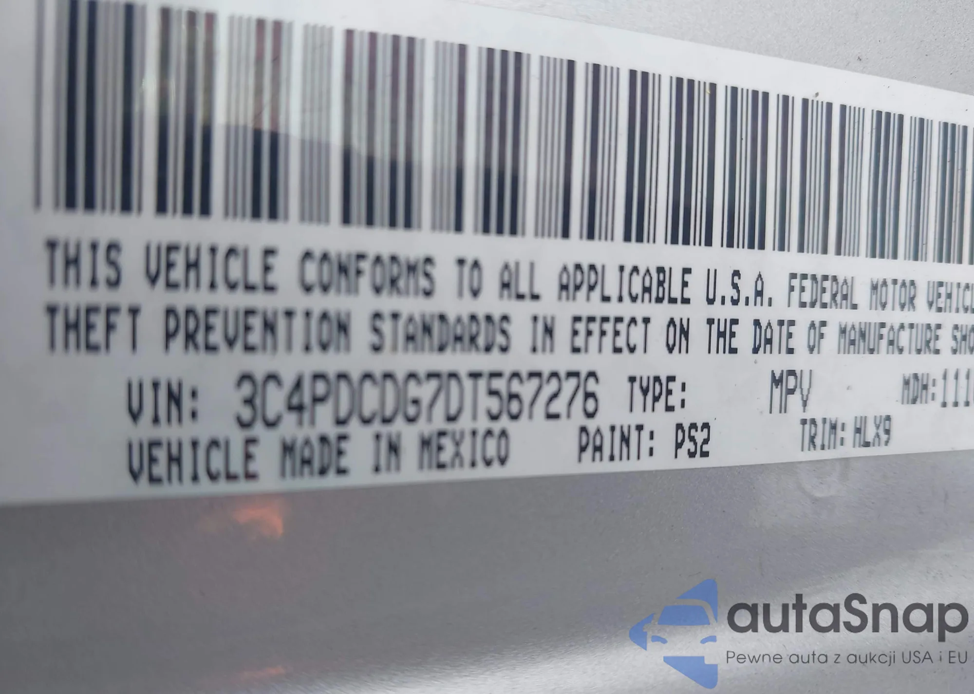 • VIN 3C4PDCDG7DT567276