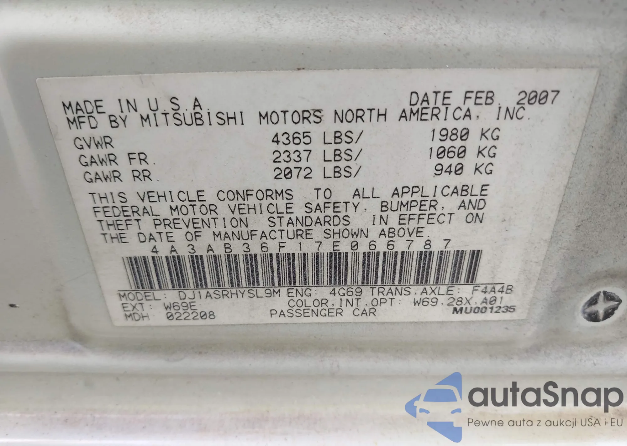 • VIN 4A3AB36F17E066787